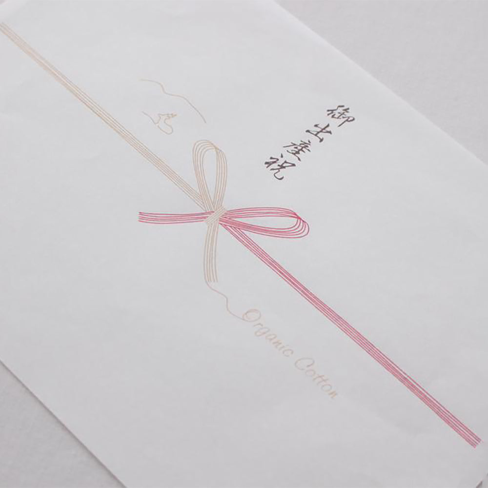 また、糸季オリジナル熨斗(のし)も付きます。標準では「ご出産祝い」と記載しておりますが、記載内容のご相談があったり、熨斗が不要であれば購入時のチェックアウト画面や店舗(0742-77-0722)への電話等でご相談下さい。