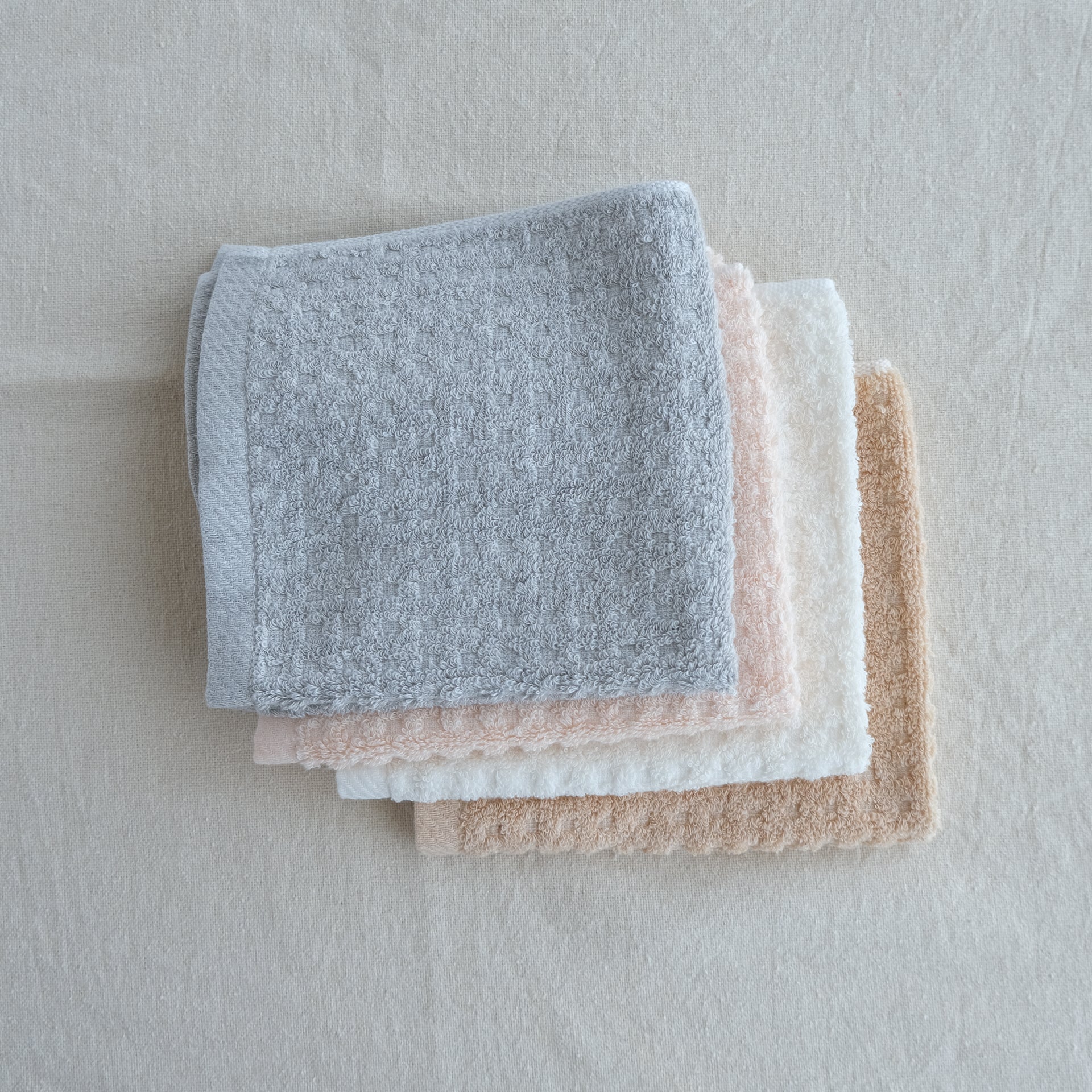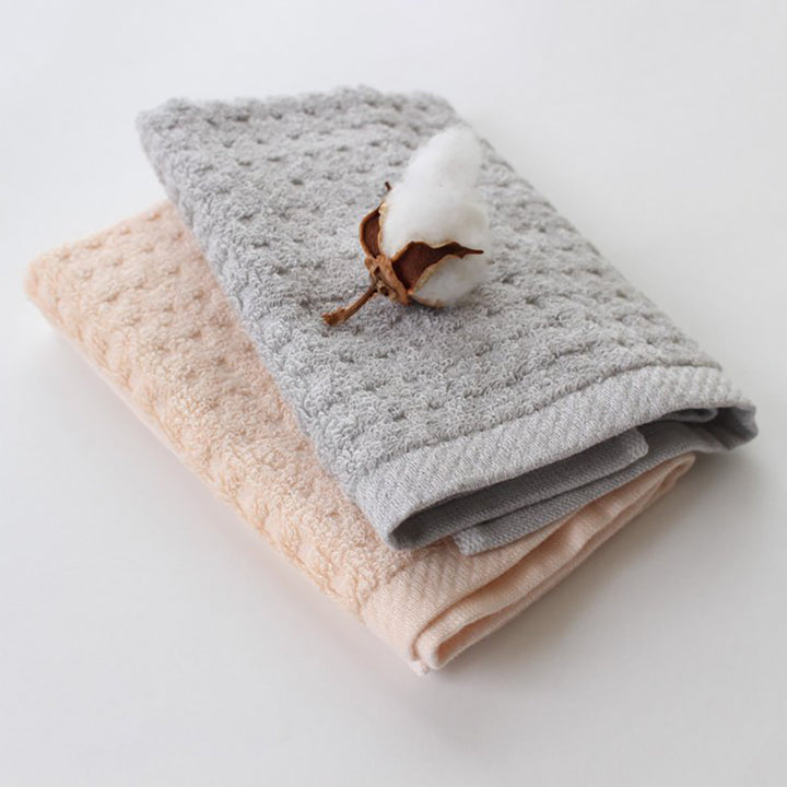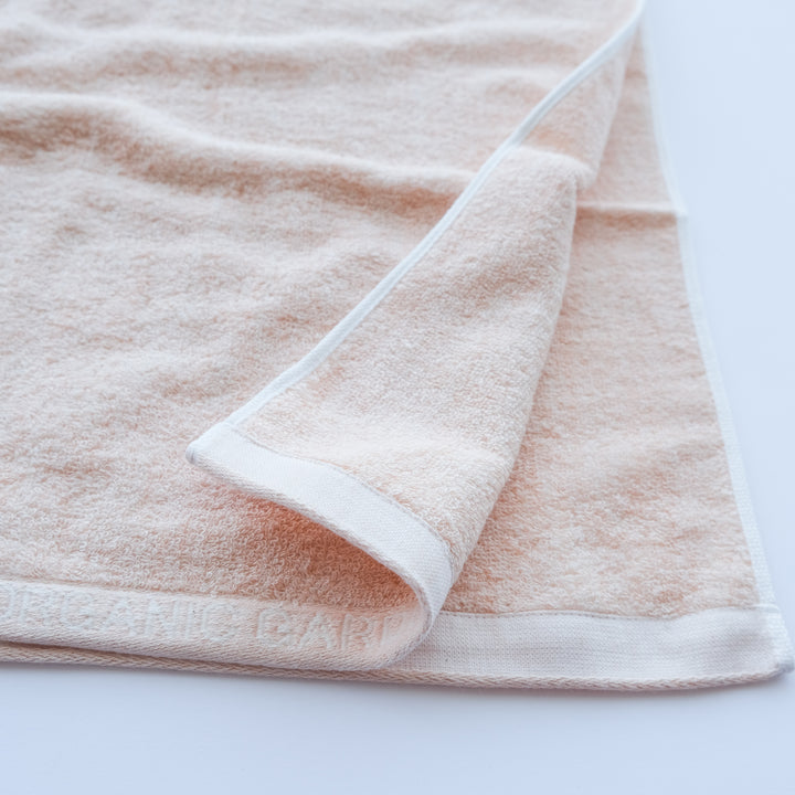 薄手でさらっとしたパイル織が心地よい肌触りのシンプルなオーガニックコットンの無地タオル。ワッフル織りはとても心地よく水の吸収も速やかです。