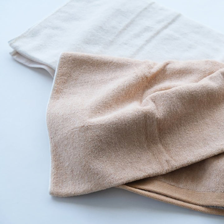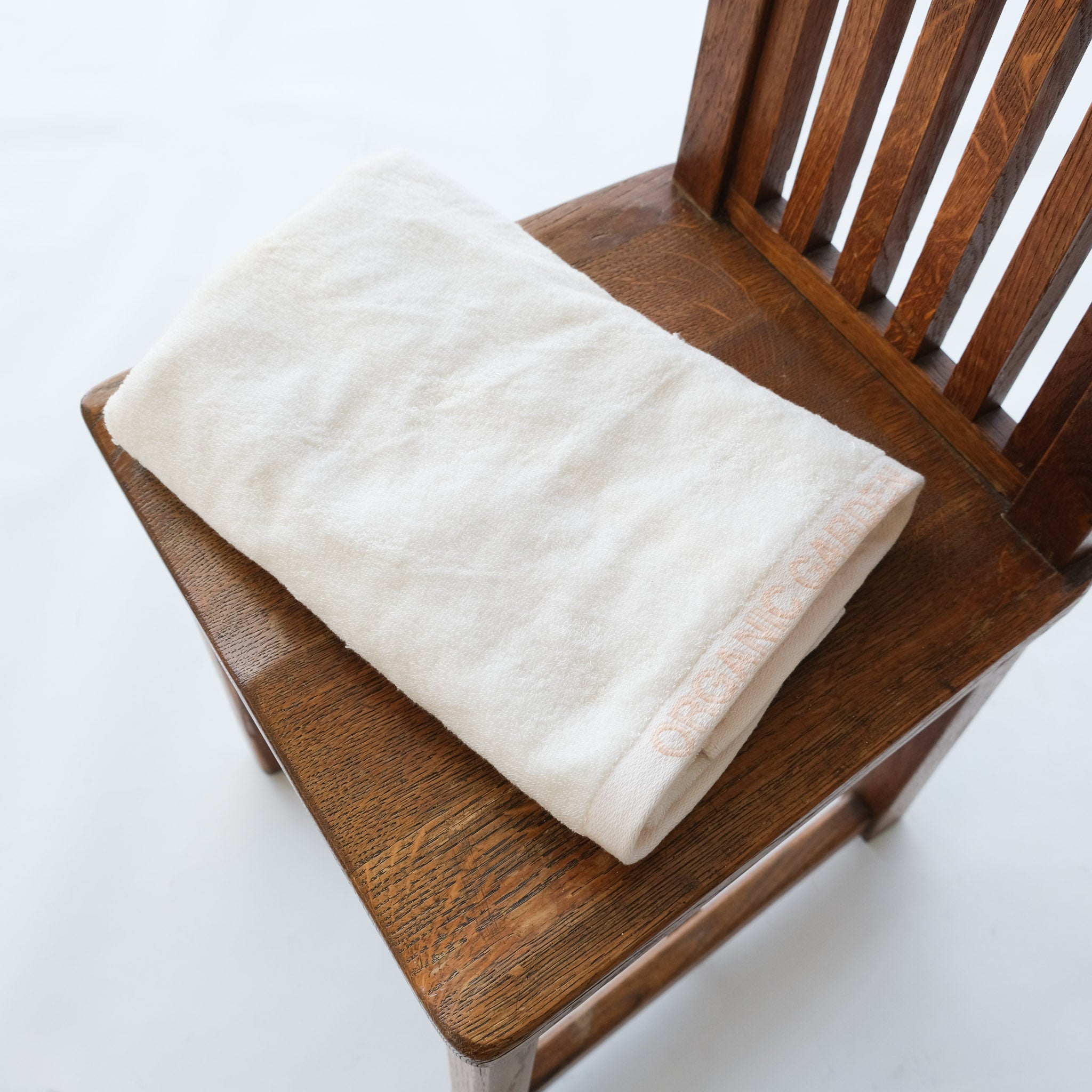 生地に厚みがあり、ふわふわしたやさしい肌触りのオーガニックコットンのバスタオル。