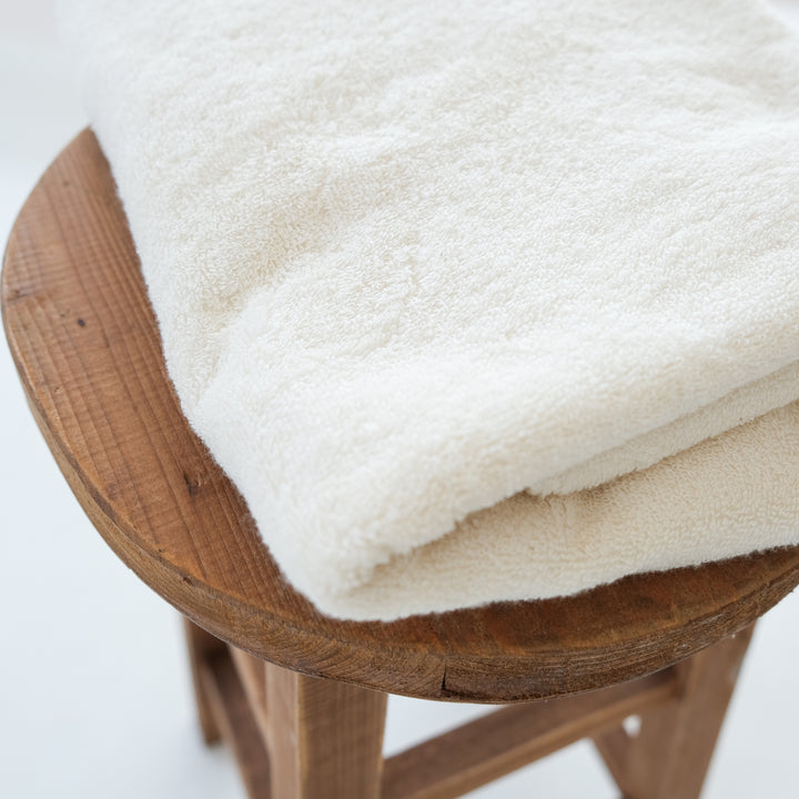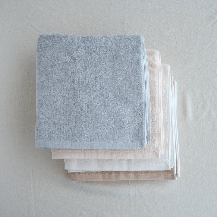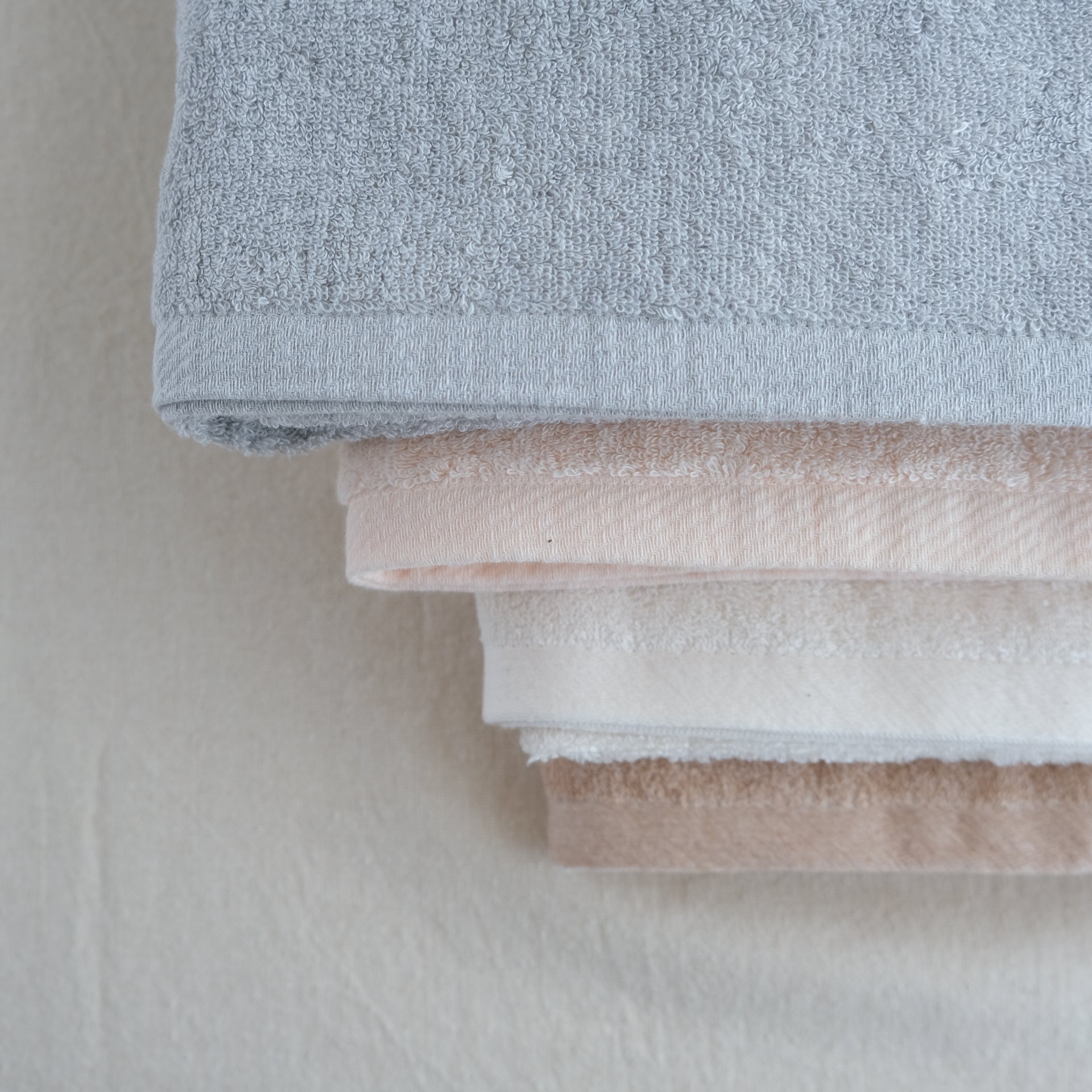 薄手でさらっとしたパイル織が心地よい肌触りのシンプルな無地タオル。コットン本来の持つ、自然の色です。