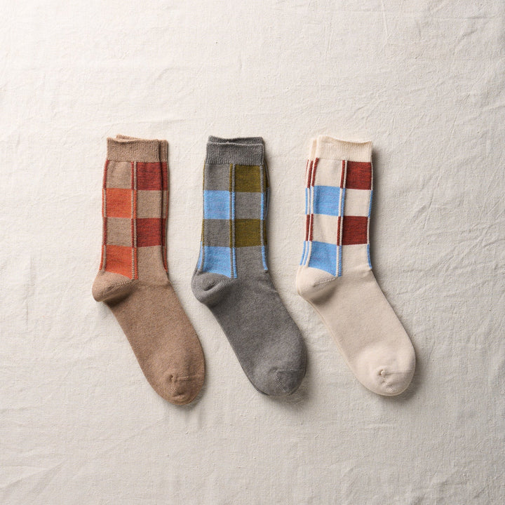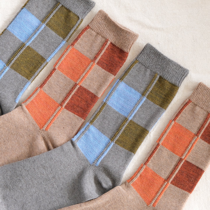 4-4009|Organic Cotton Wool Yak Block Pattern Socks