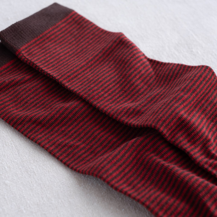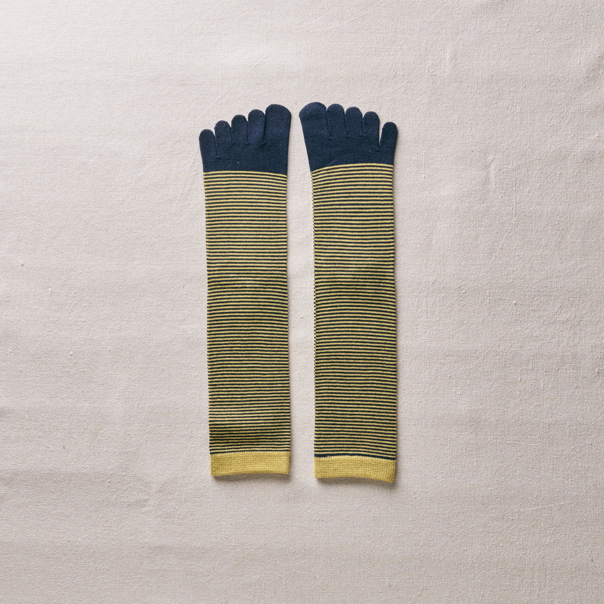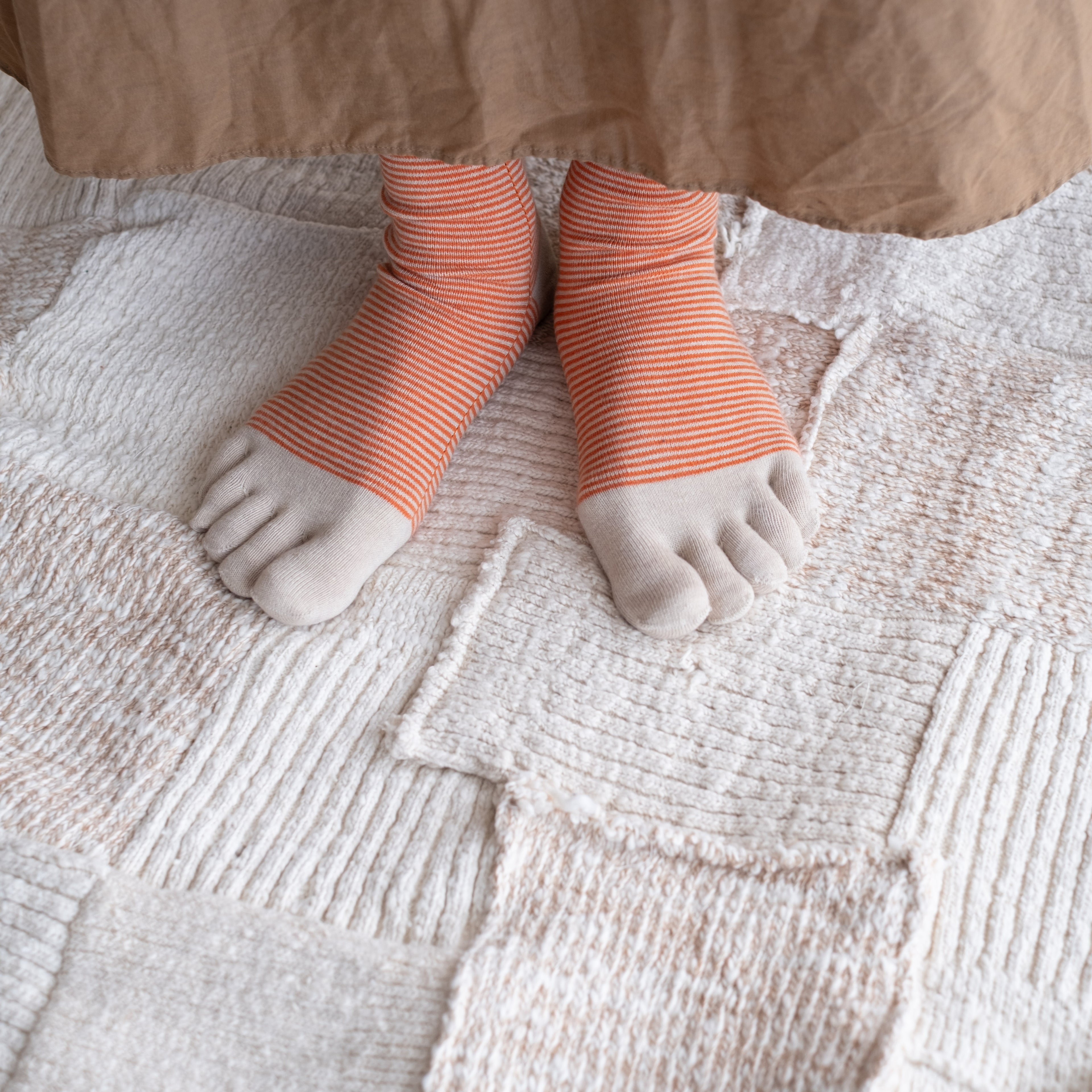 オーガニックコットンとウールを混紡した素材の5本指ソックス。ウールが優れた吸湿性と保温性を持ち、寒い季節にも足元を暖かく保ちます。