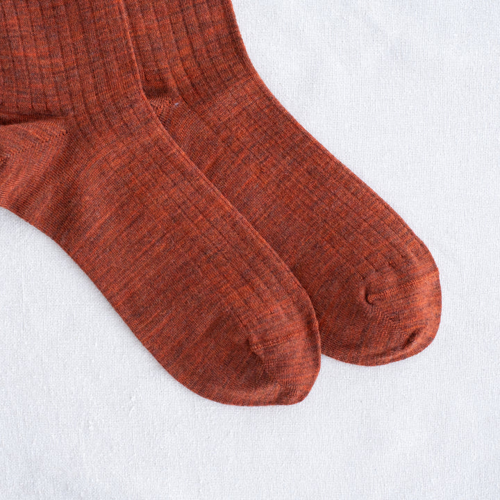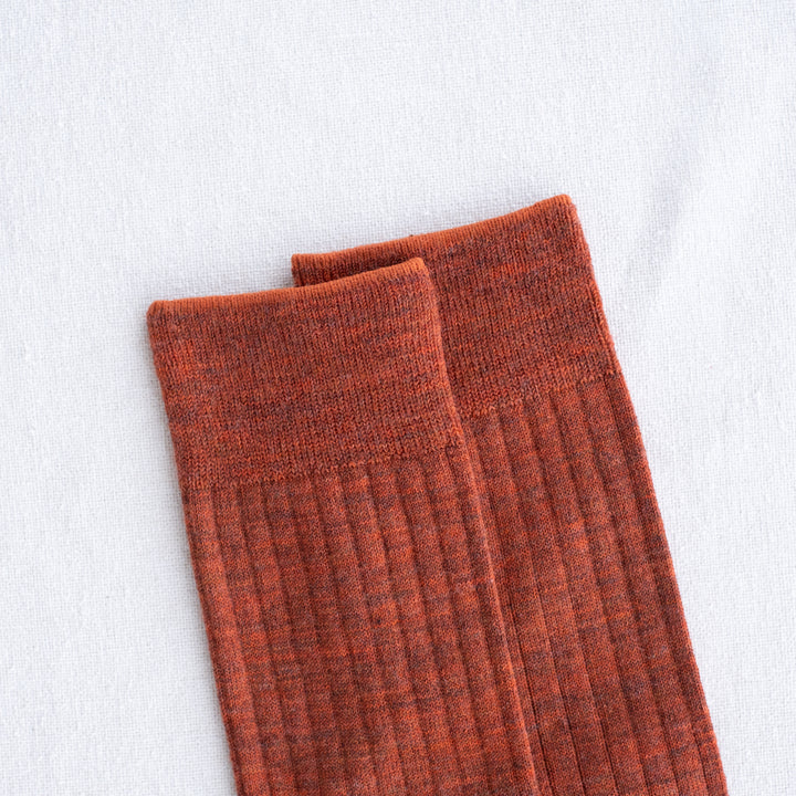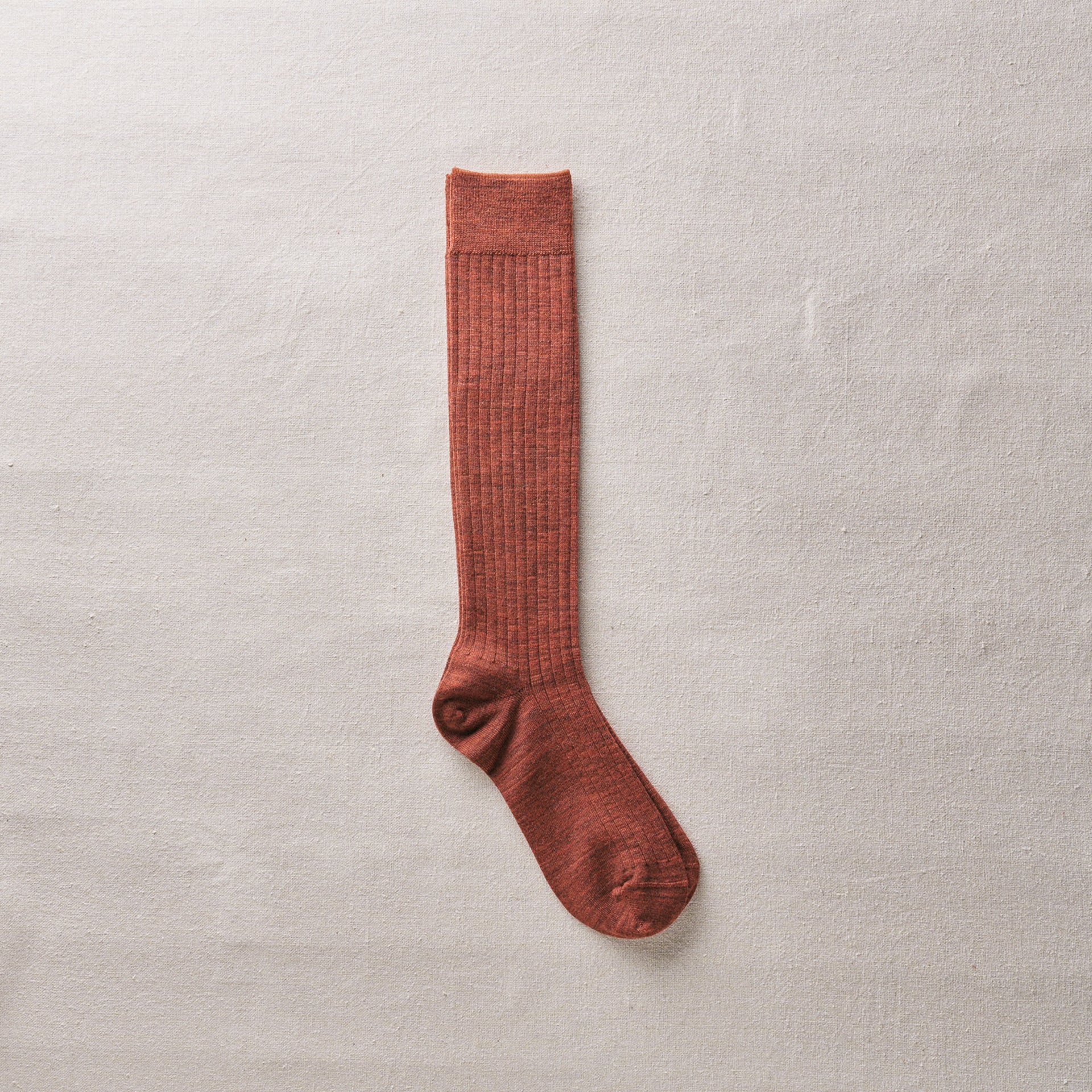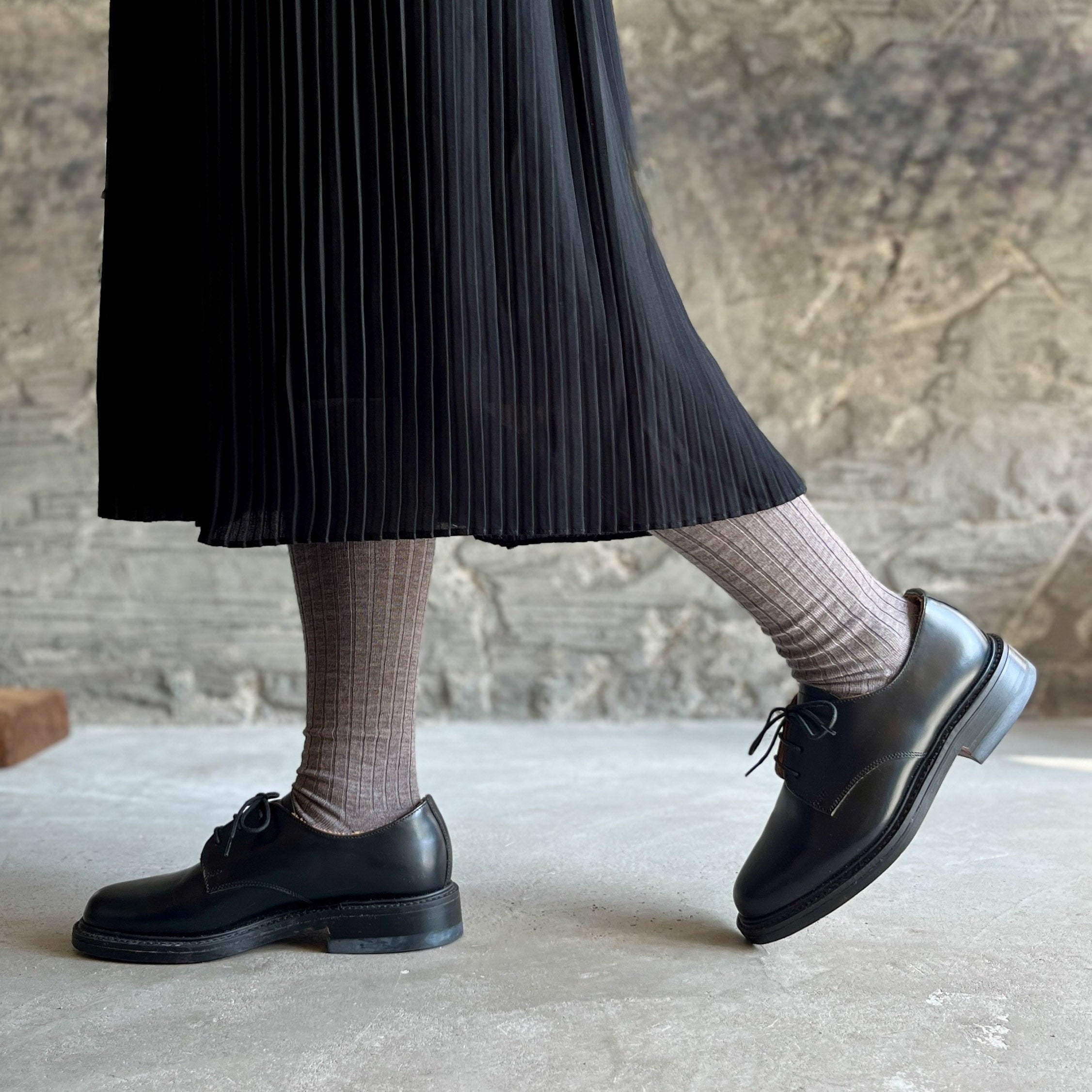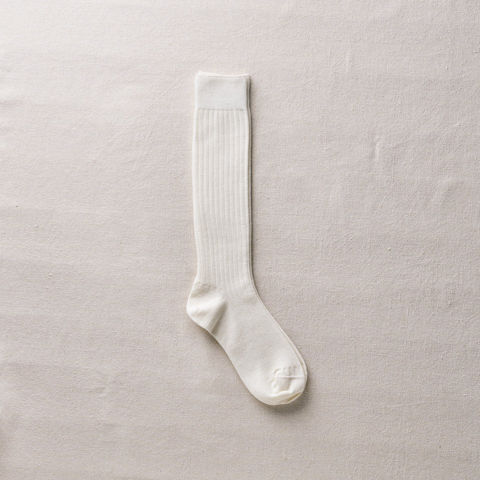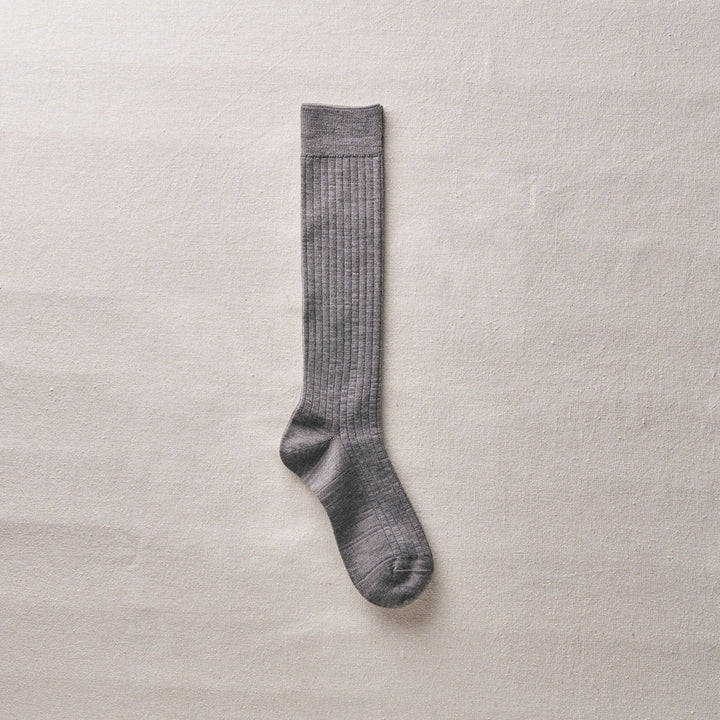 滑らかで肌触りの良い梳毛ウールを使用して編み立てたハイソックス。膝下までしっかりとカバーし、暖かさと快適さを両立します。爪先はリンキング仕様で、縫い目がごろつかず、足元にストレスを感じさせません。シンプルで上品なデザインは、さまざまなスタイルに合わせやすい一足です。
