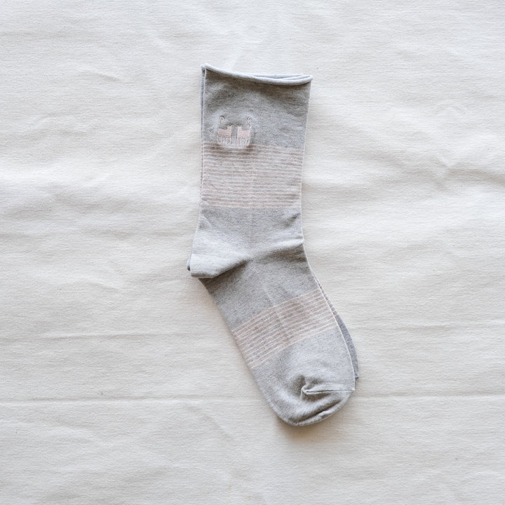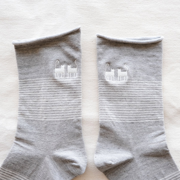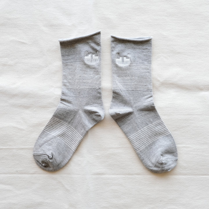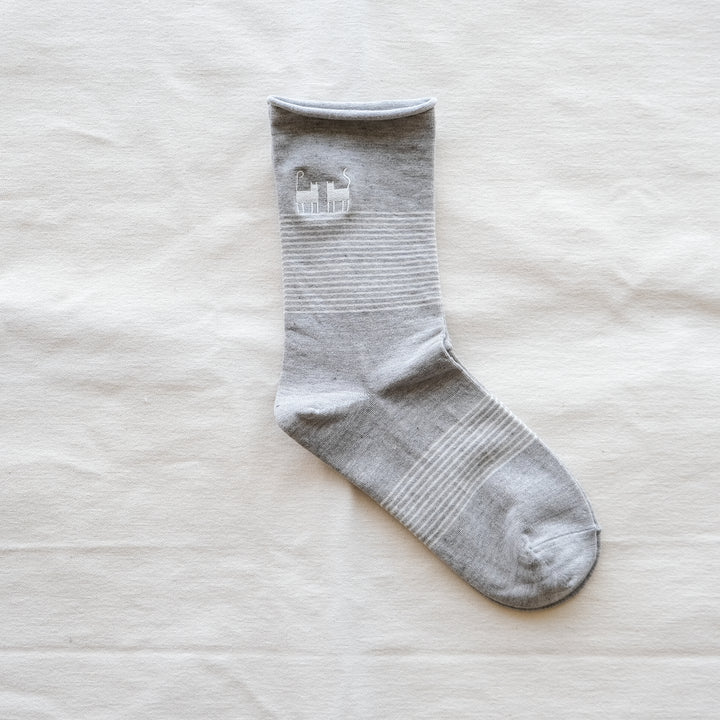 5-1091|にゃらまち刺繍 ゴムなしソックス <糸季限定>