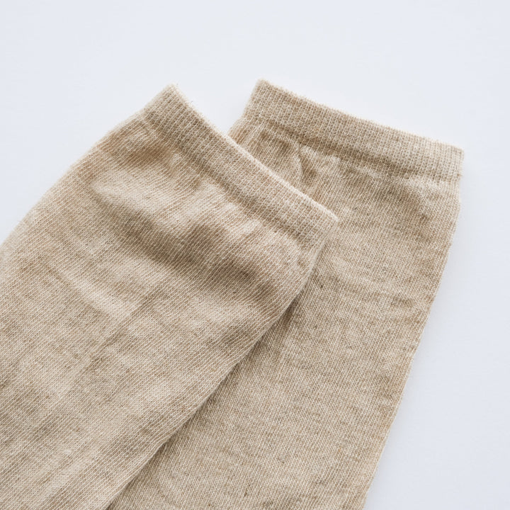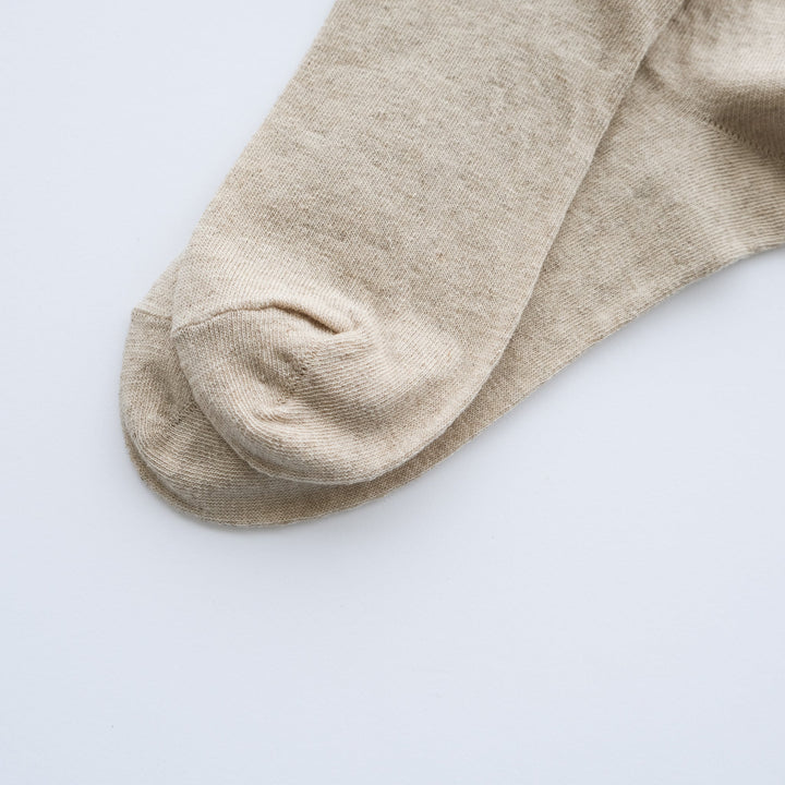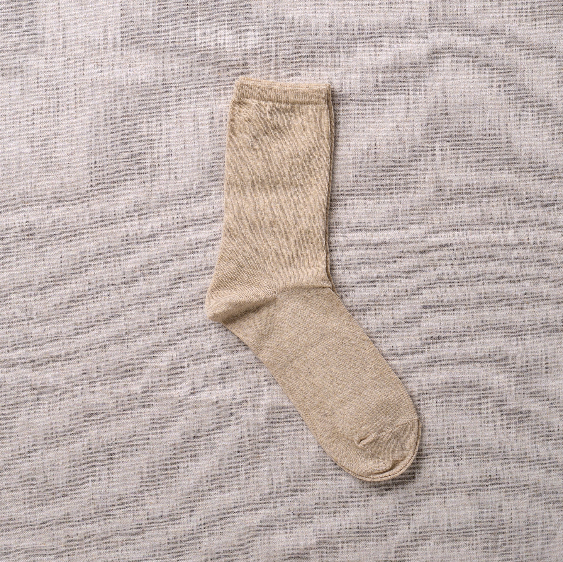 薄手でプレーンなハイゲージ。どんな服装にもなじみやすく、コーディネートに取り入れやすい一足です。リネン混で、清涼感のある履き心地です。汗をしっかりと吸い、足元を快適に保ちます。
