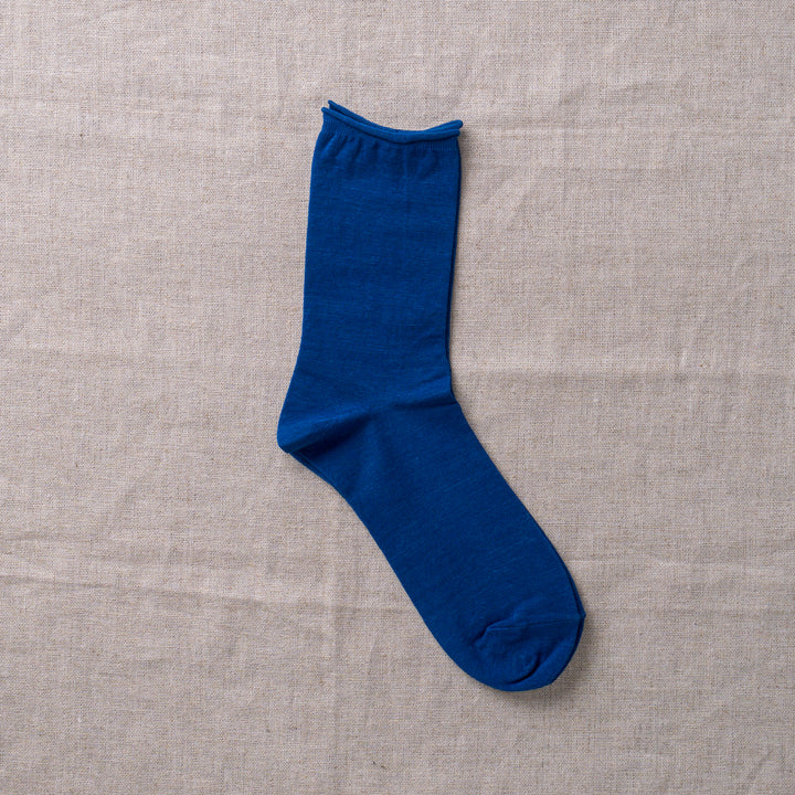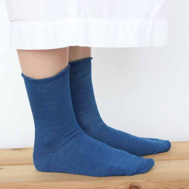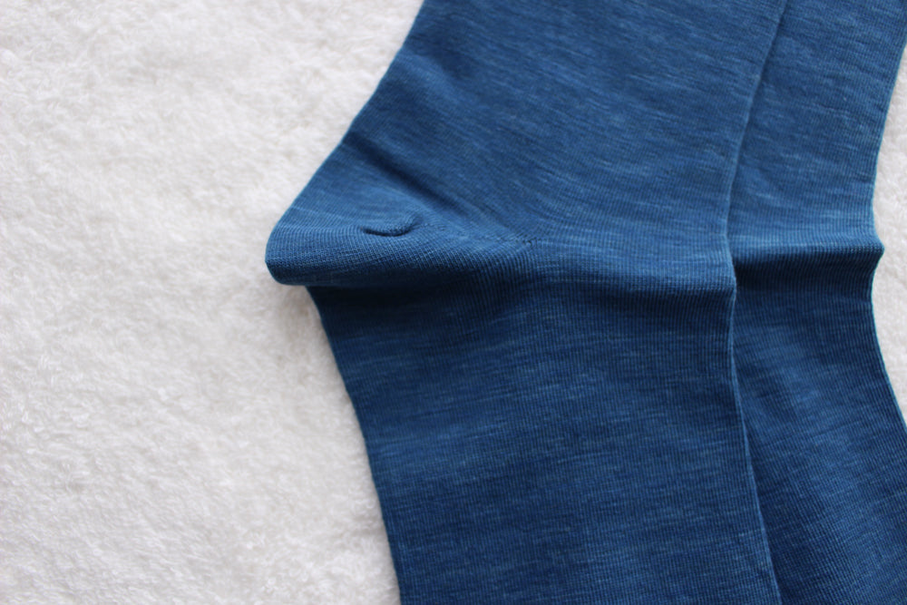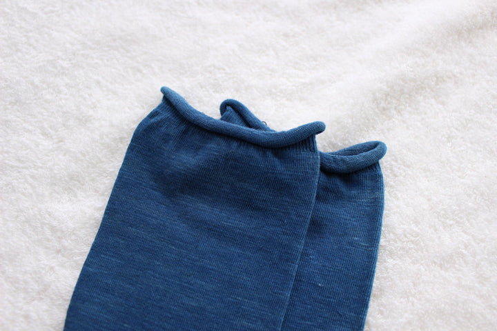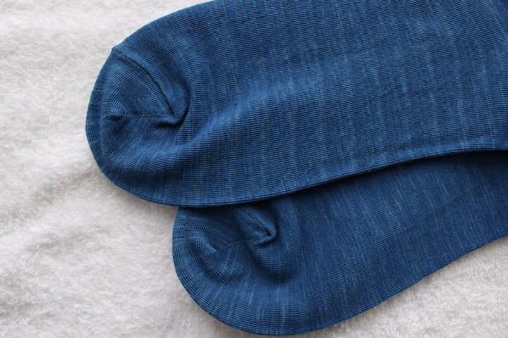 履き口を強くしめつけない薄手のベーシックな藍染めの靴下です。
