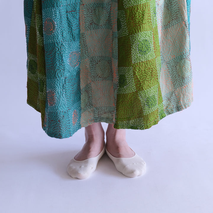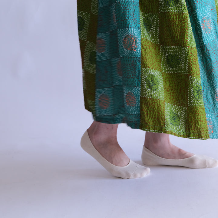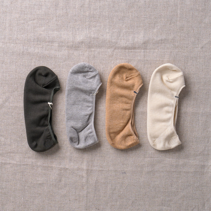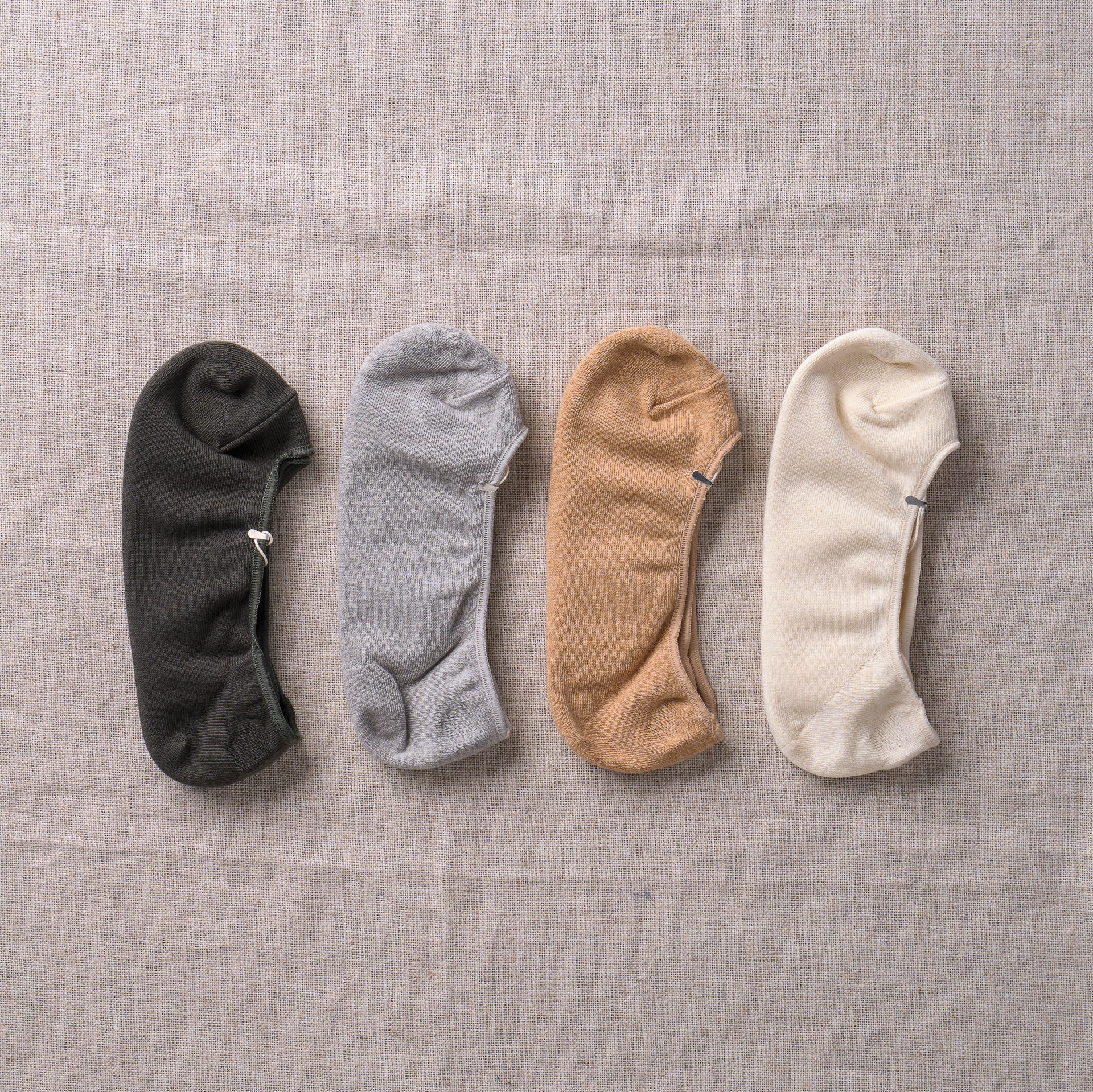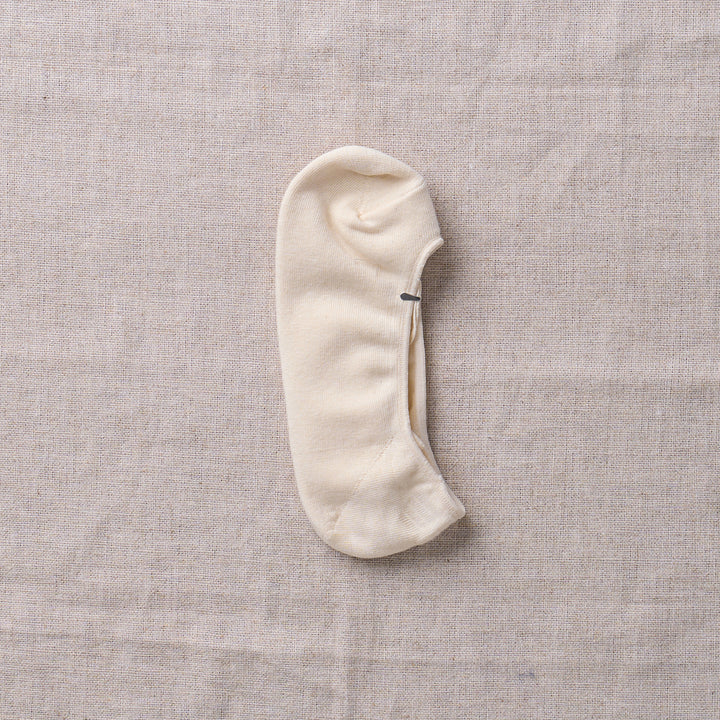 オーガニックコットンのカバーソックス。パンプスやローファーを履く時に合わせやすく、コーディネートの邪魔になりません。薄手で伸びも良く、どんな足のカタチにもしっかりフィットします。とてもソフトな履き心地です。