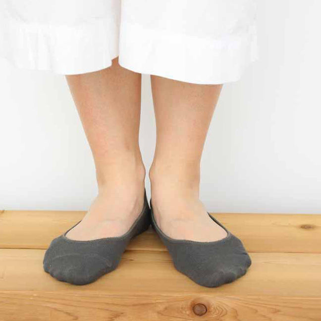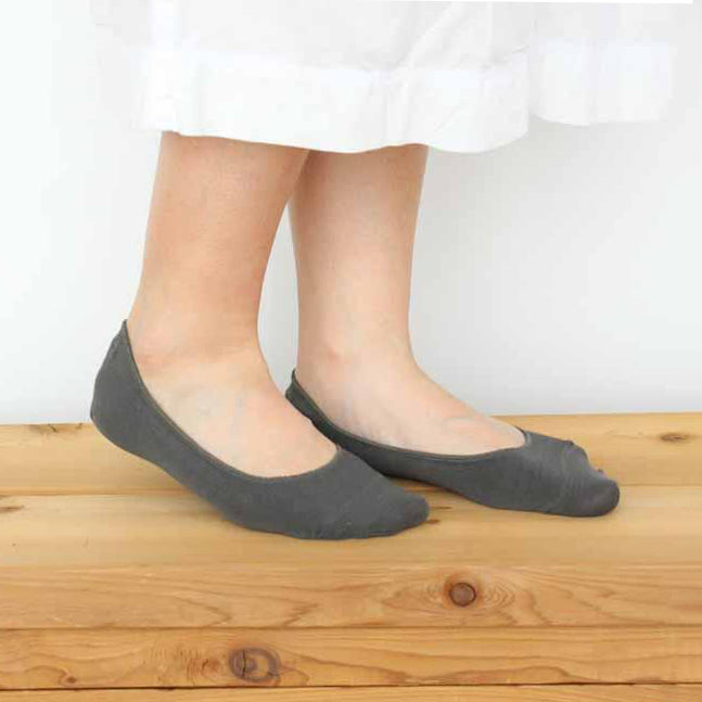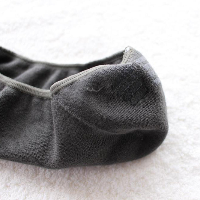 五倍子染めを使用したナチュラルブラックのカバーソックス。ローファーやパンプスに合わせて頂くのにぴったりです。 伸縮性の高い編み方ですので、締めつけ感は少なく、長時間履いていてもストレスが少ないです。