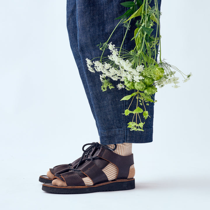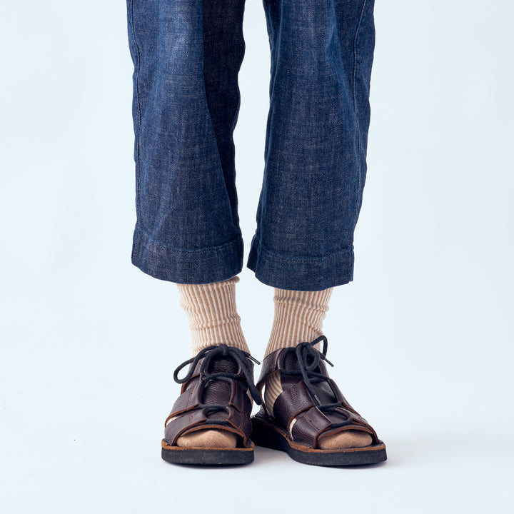 カラーはすべて自然の色。ブラウンはカラーオーガニックコットンの茶綿を使用しており無着色です。ピンクとグレーは地層の色素で色付けする彩土(ハニ)染めオーガニックコットン糸を使用しています。