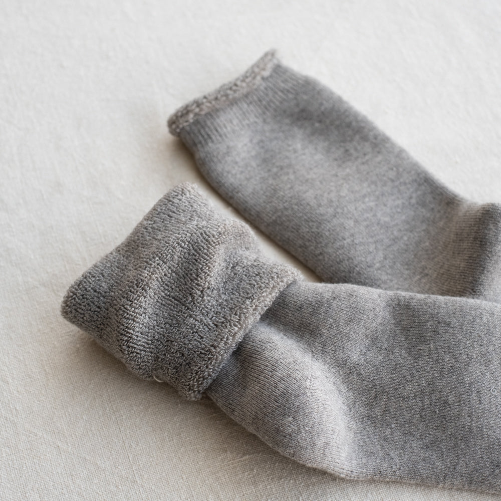 オーガニックコットンとヤクの混紡糸を使用し内側をパイル編みにしたソックスです。ふんわりやわらかな履き心地抜群のパイルが足をやさしく包み暖めてくれます。