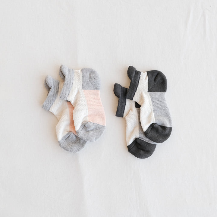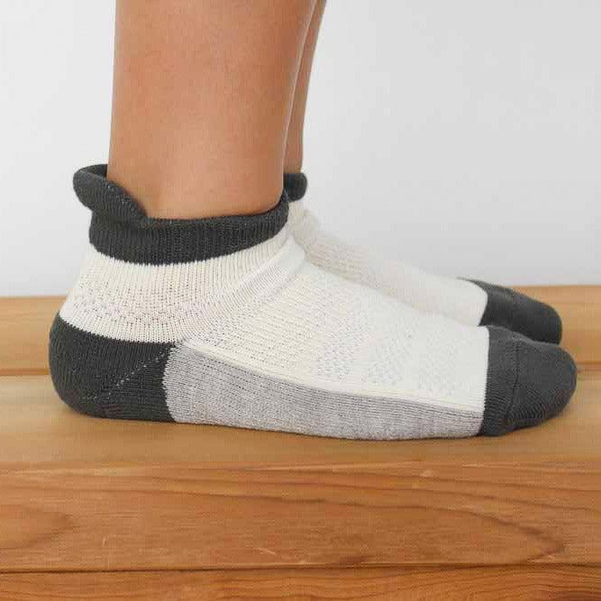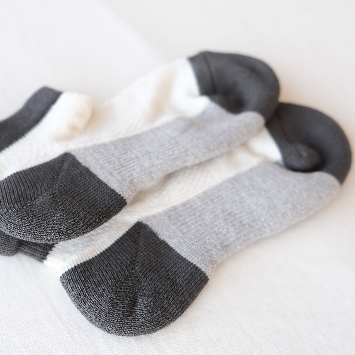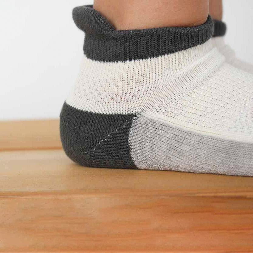 ヒーリンとは、"かかと=heel"と"癒す、助ける=heal"を掛けた名前となっており、かかとの前後をゴムでサポートすることにより、安定して疲れにくい履き心地を生み出します。やさしくフィットしてくれるこだわりのスポーツソックス、人間工学に基づいたオリジナルのサポート機能が血行を損なうことなくソックスのズレを防止してくれます。また足底部分はパイル編みになっているので衝撃を吸収してくれます。