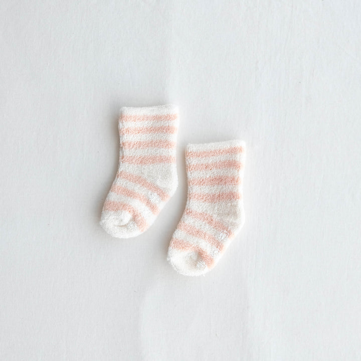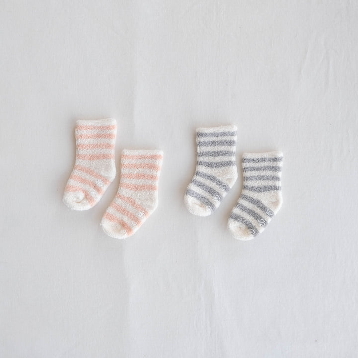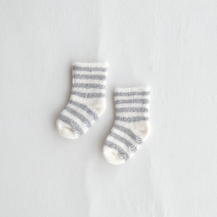 太めのボーダーがかわいいふんわりソックスです。