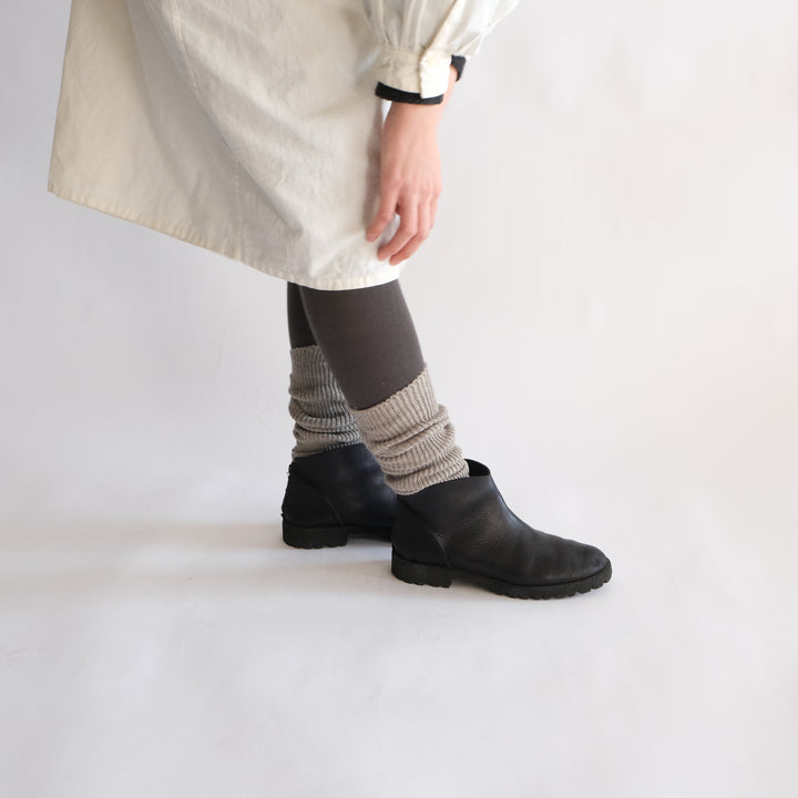 五倍子染めのプレーンタイツ。程よい伸びでストレスなく履いていただけます。