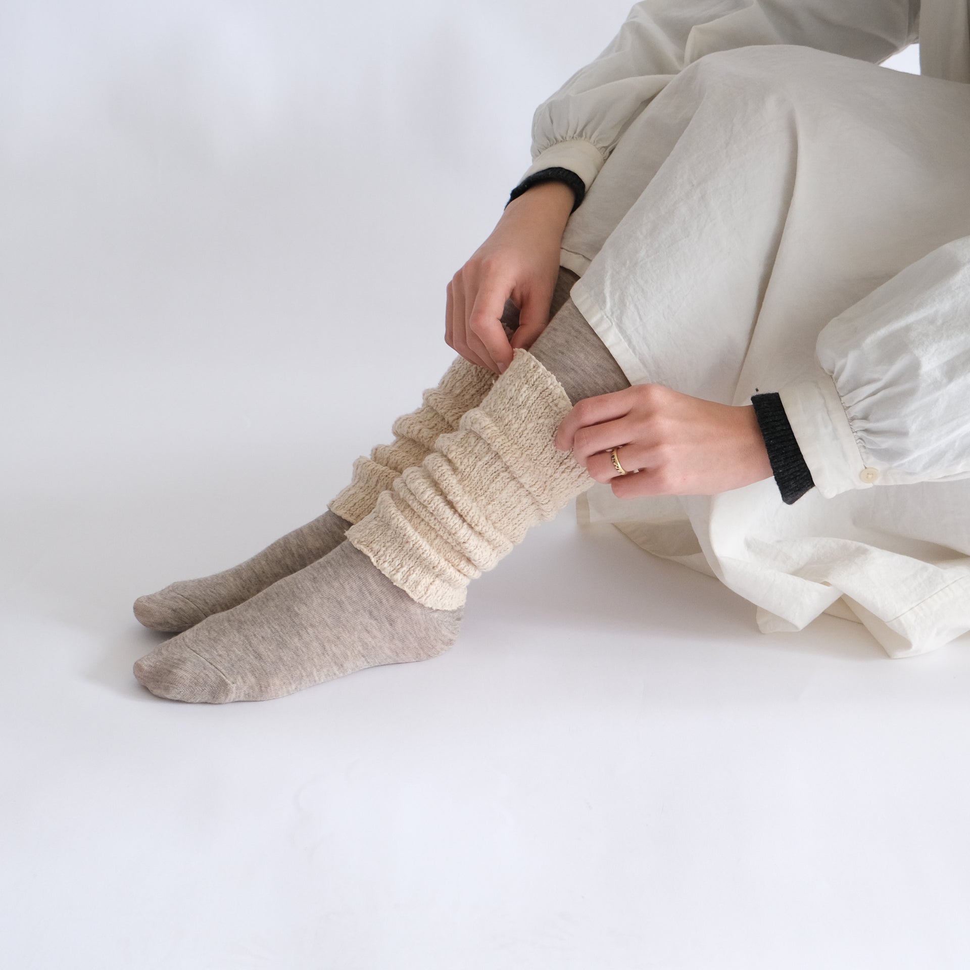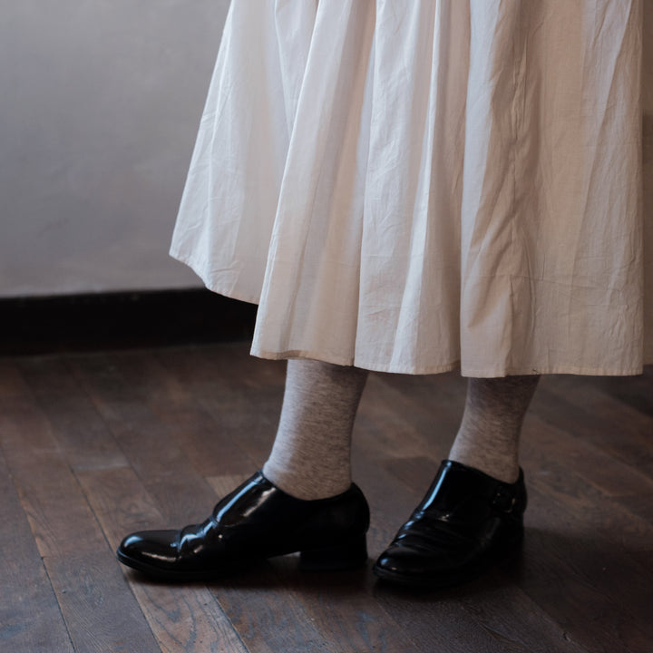 綿花の中でも最高クラスの称号である超長綿「スーピマコットン」と高い保温性を持つヤクの混紡糸で編み立てたやわらかな履き心地のタイツです。プレーンな平編みなので生地が厚ぼったくなく、スカートはもちろんボトムスの下にも合わせやすいです。ヤクはウールよりもしっとりしており、チクチク感が少ないのも特徴です。