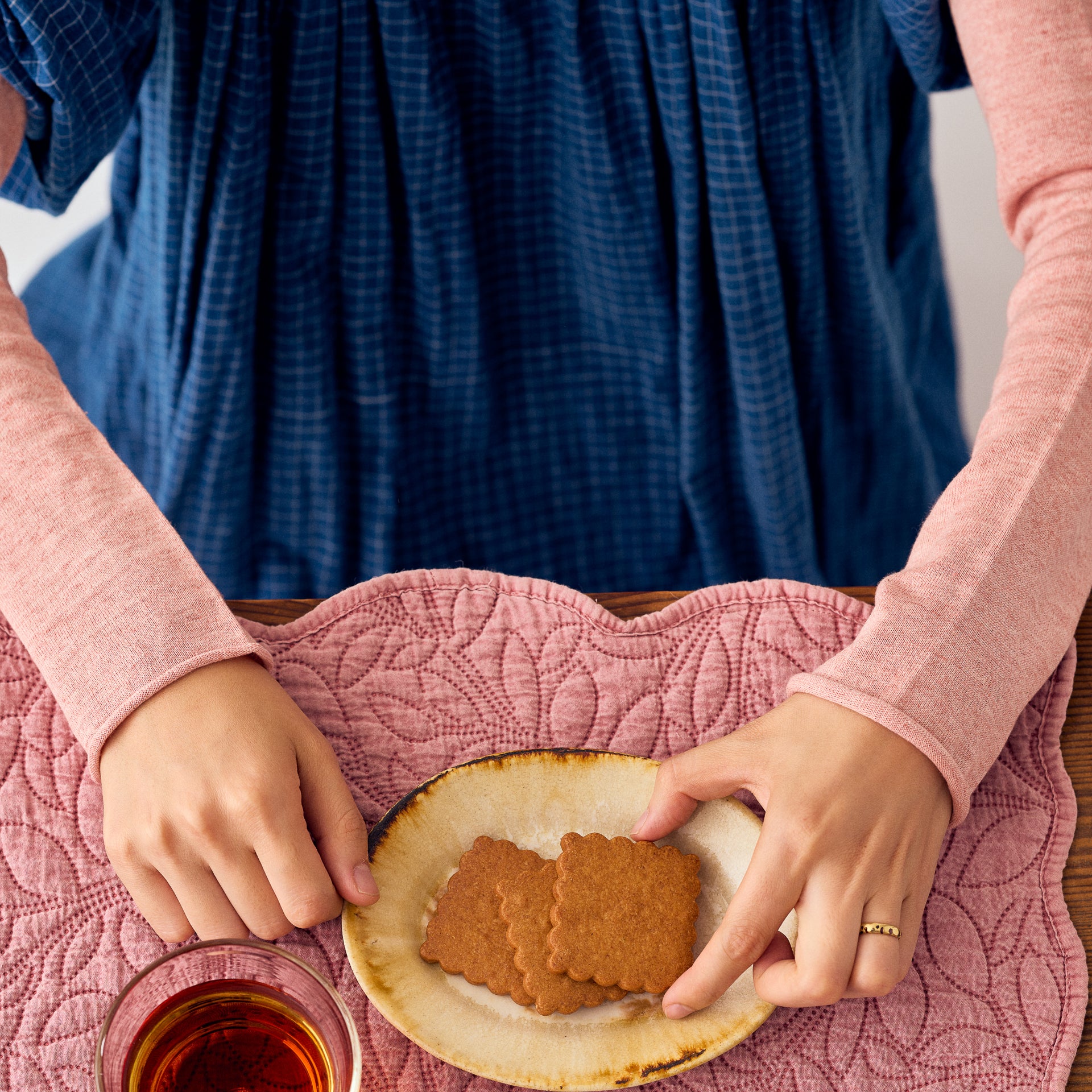 ベンガラ染めの綿糸は日光による退色に強いので、柔らかな色合いを長く楽しんでいただけます。