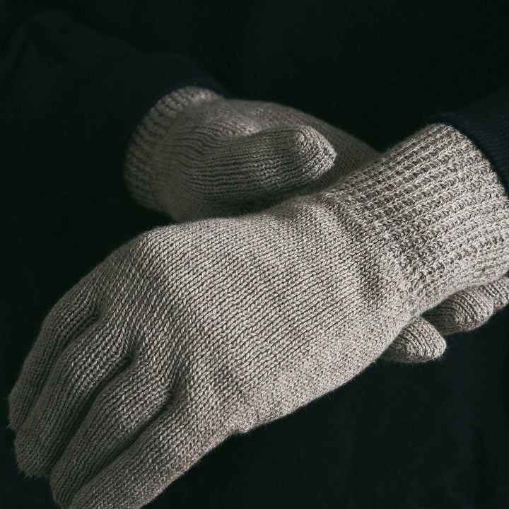 しなやかな超長綿のスーピマオーガニックコットンと高い保温性を持つヤクの混紡糸で編んだやわらかでとてもあたたかい、ホールガーメントのシンプルで実用的なデザインで、日常使いできる手袋です。