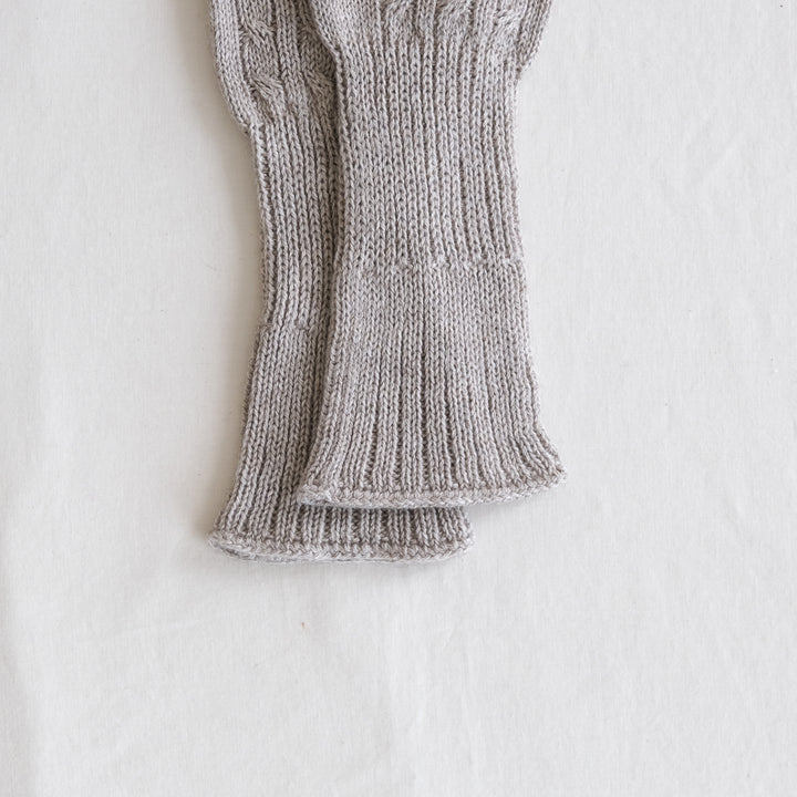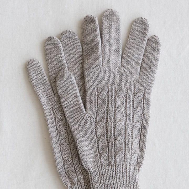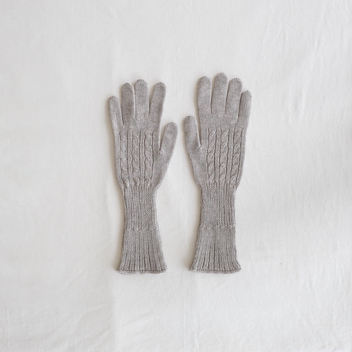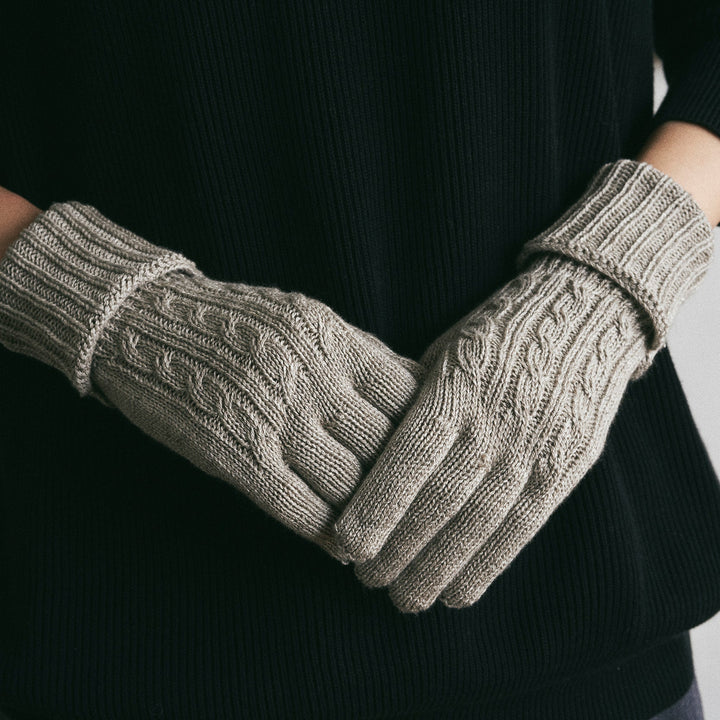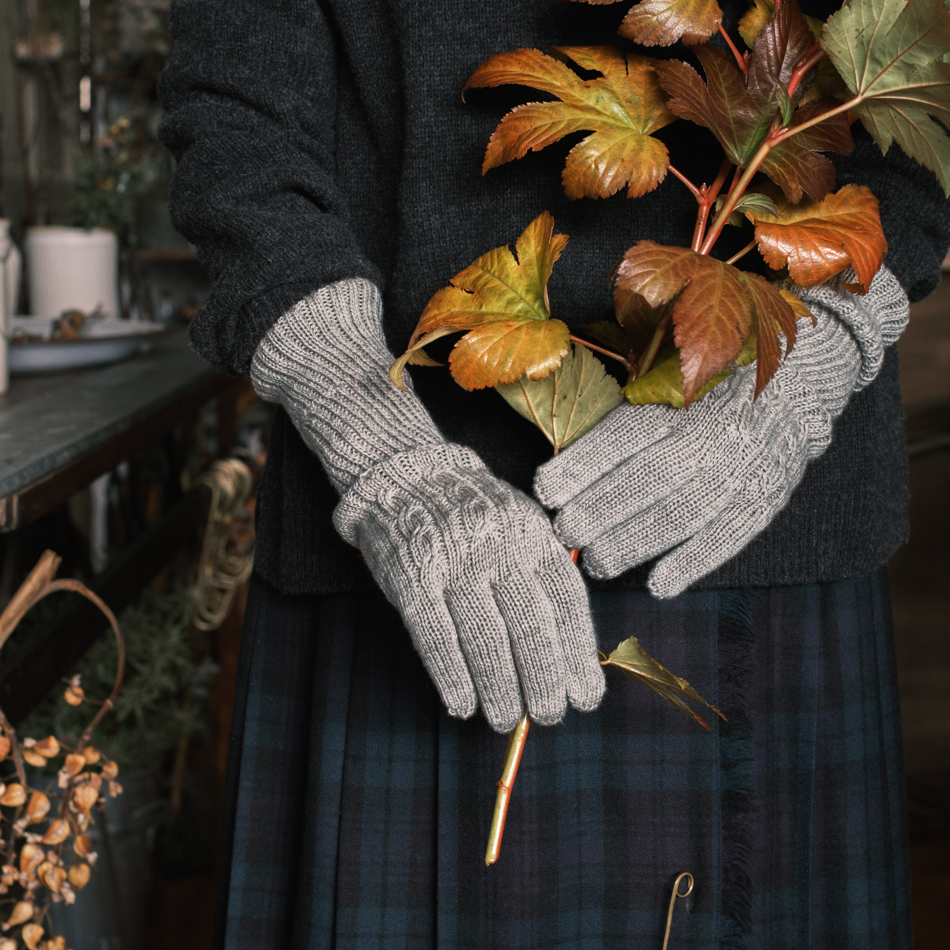 しなやかな超長綿のスーピマオーガニックコットンと高い保温性を持つヤクの混紡糸で編んだやわらかで、とてもあたたかい手袋です。手首リブ部分は袖口の広いアウターなど隙間からの寒さからしっかりガードできるよう長めになっています。二重に折り返すとよりあたたかさを感じます。