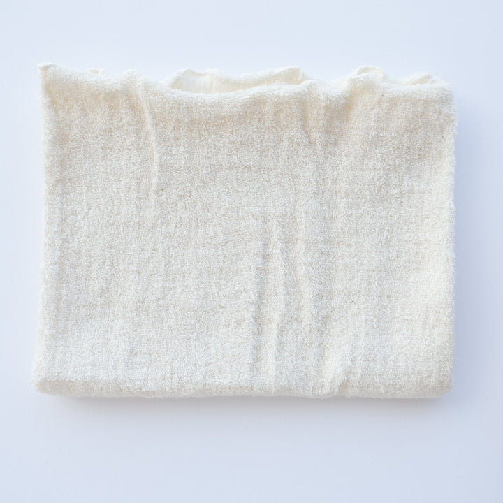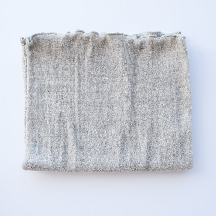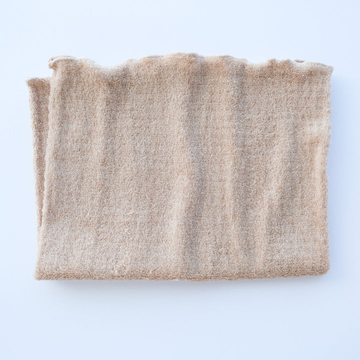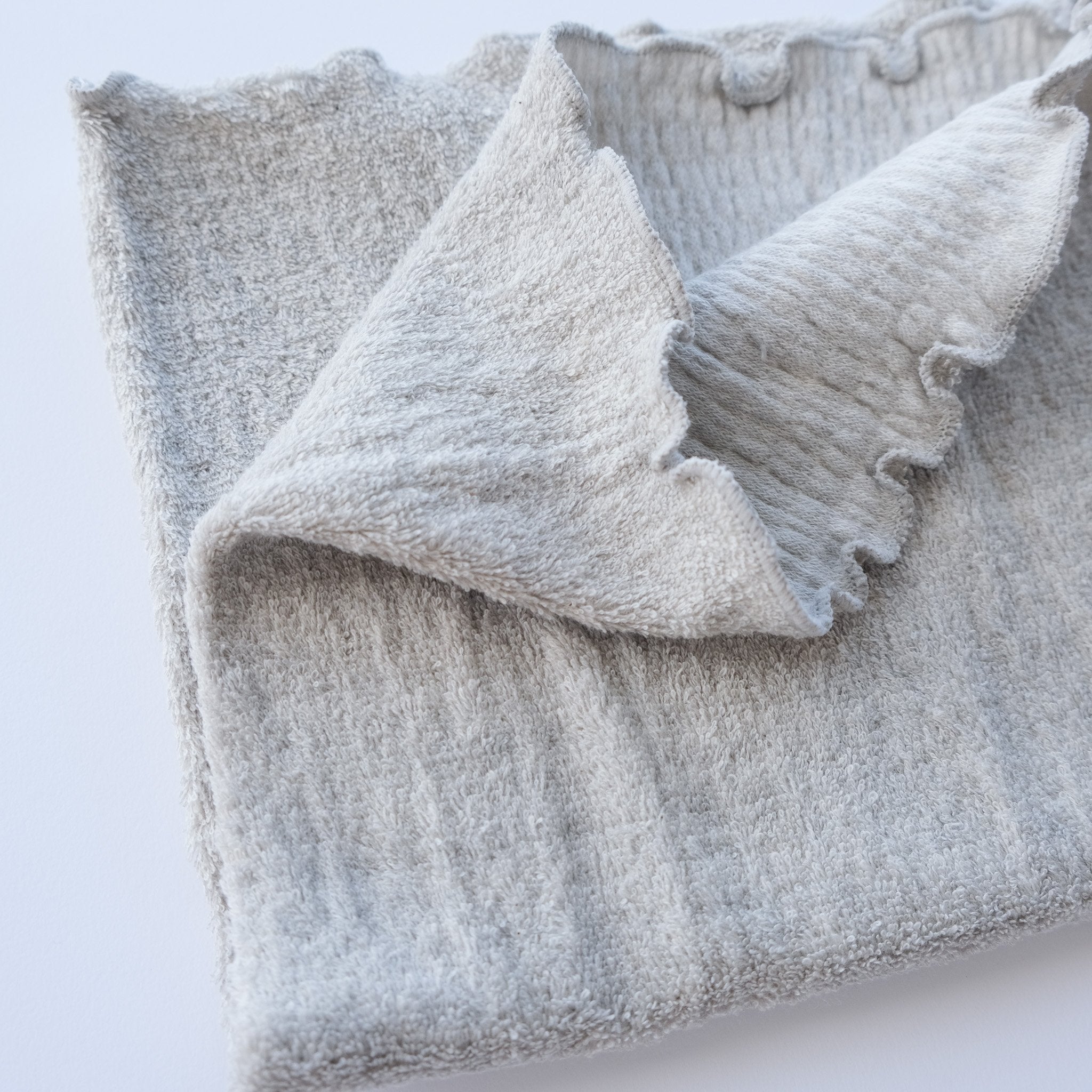 表はふわふわのパイル、裏はしっとりやさしく、表裏どちら向きでも身につけられます。