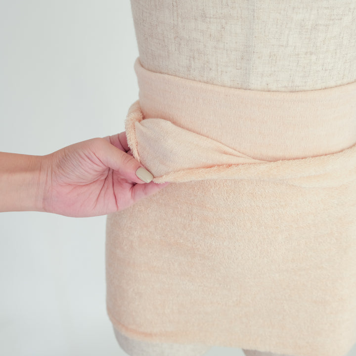 身体の広範囲を覆ったり、二つ折りにするとより暖かに着用できますので、温活や産前産後にもオススメです。