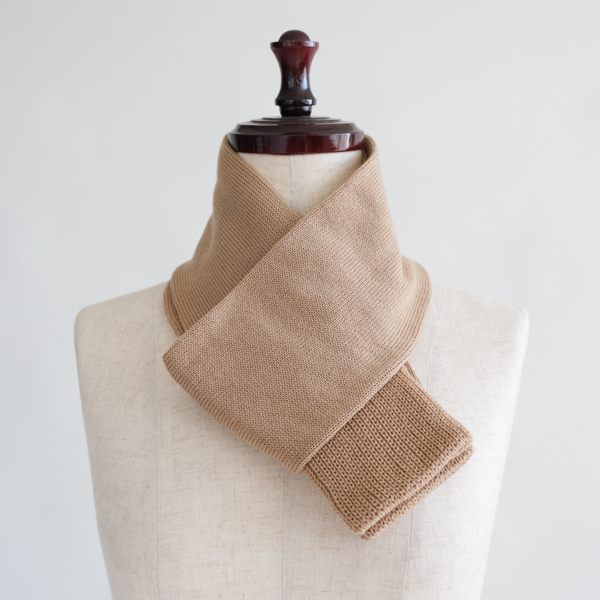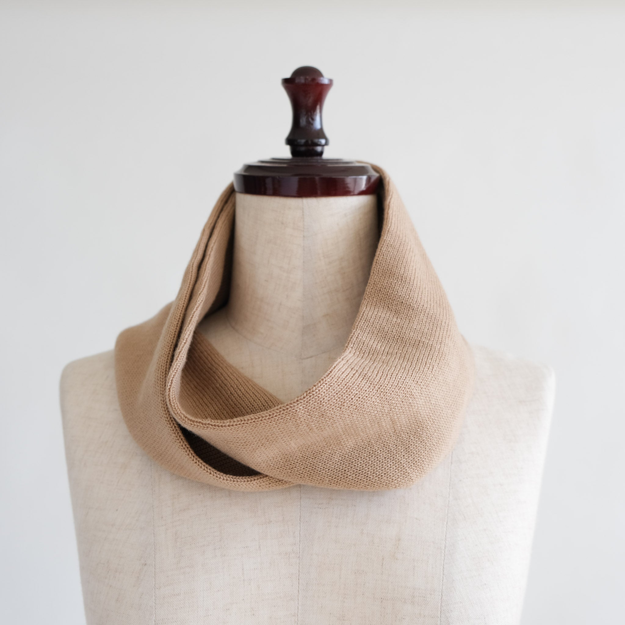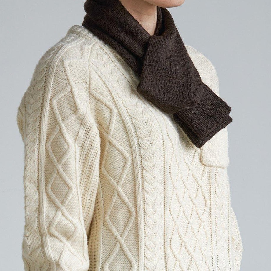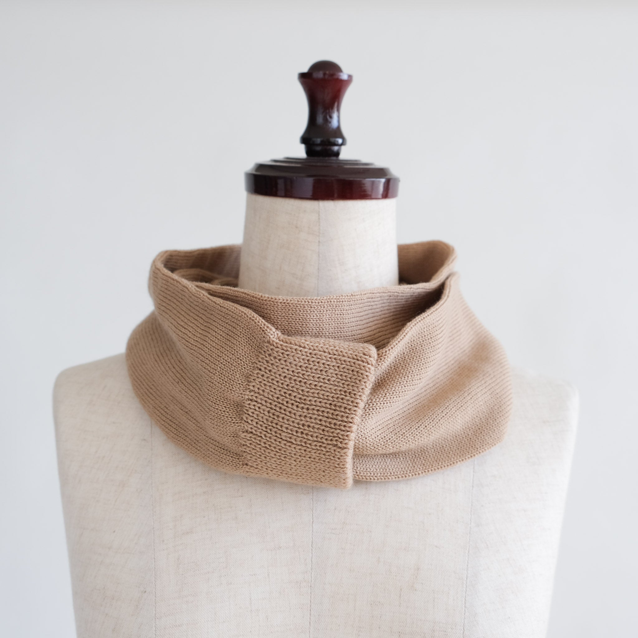 靴下編機で編んだ筒状のネックウォーマー。滑らかで肌触りの良い梳毛のウールを使用。巻きやすくスッキリとした細身タイプです。