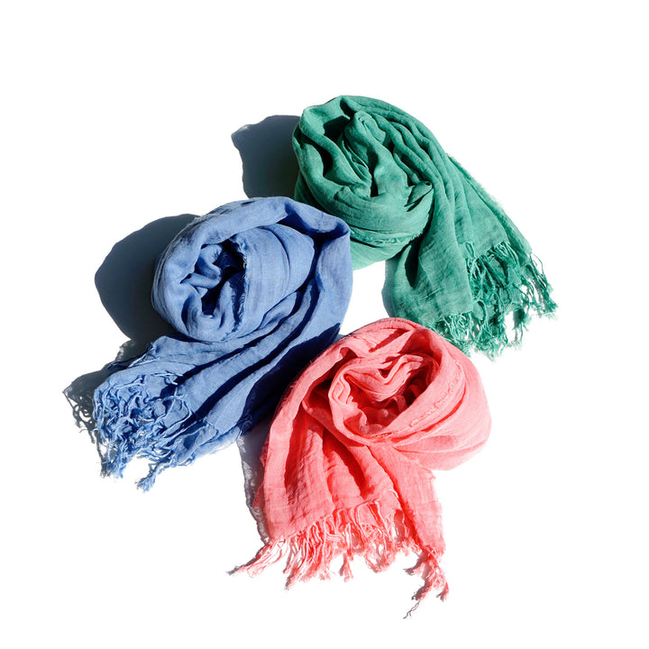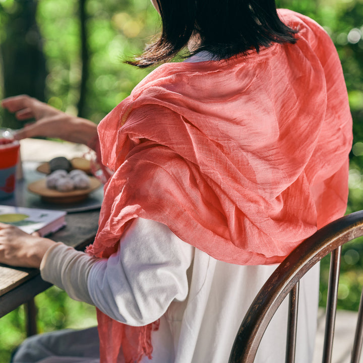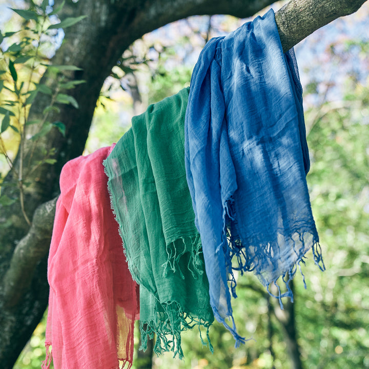 綿織物の一大産地として栄えた歴史がある愛知県の知多半島の織物工場で国内の高い技術を生かした大判ストール。