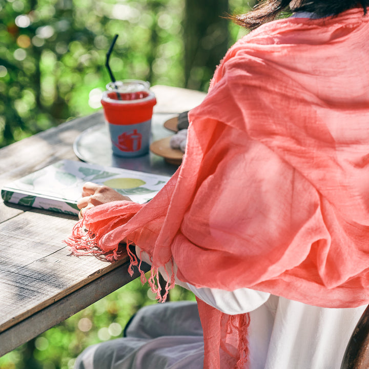肩から羽織ってみたり、ひざ掛けにしたり。とても軽いのも外出時に嬉しいポイントです。