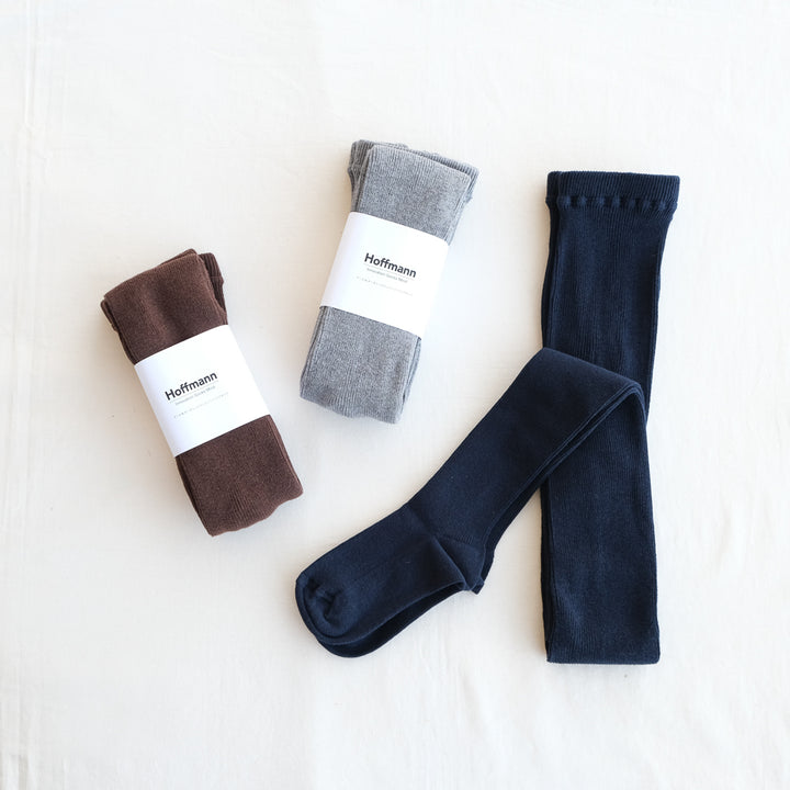 ウール3割、オーガニックコットン7割の割合で混紡したHoffmannオリジナルの糸を使い編み立てたリブタイツ。伸びが良くフィット感のある1×1リブは空気を多く含み温かな履き心地です。腰までしっかりと覆う深めの股上です。