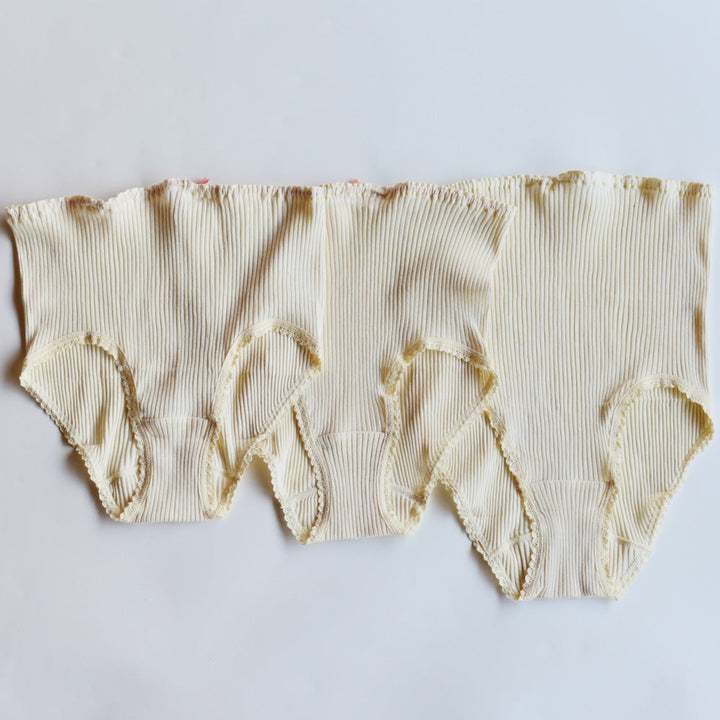 sugano organicの定番。股上は深めでおへそ近くまであり、腰やおなか周りをしっかりと包み込みます。暖かく締め付け感はありません。全サイズ幅は同じで股上が異なります。Lサイズはマタニティー用にもおすすめです。