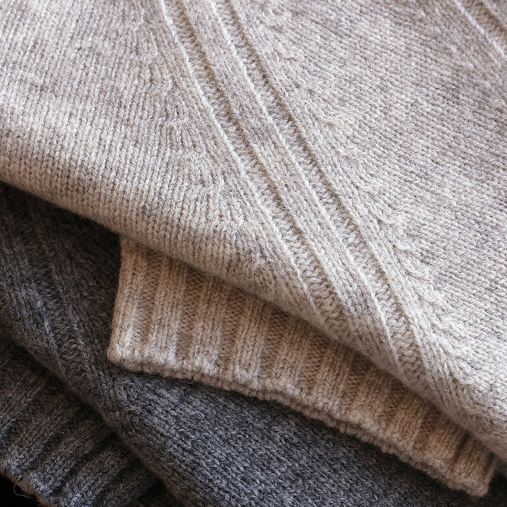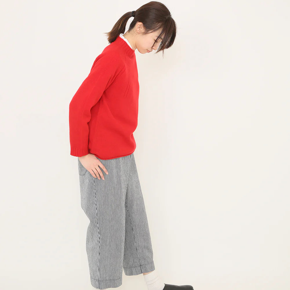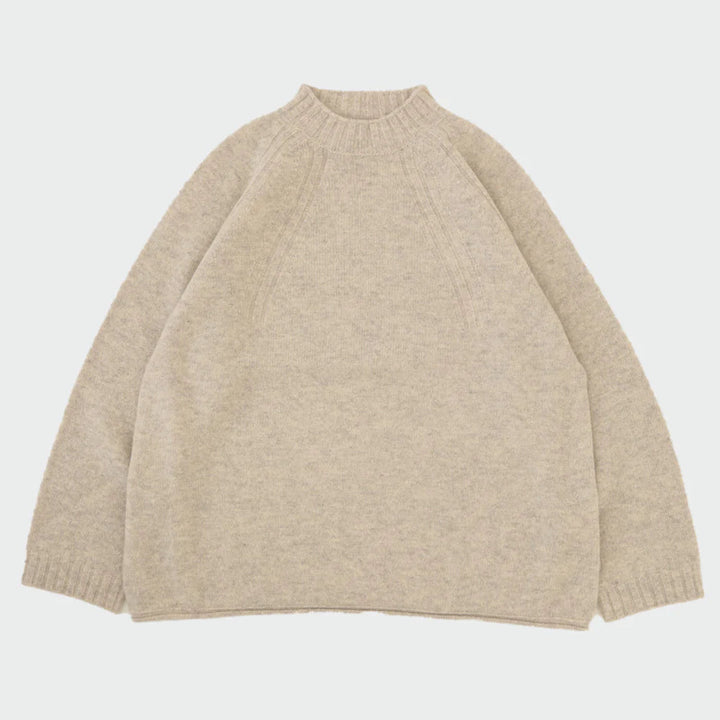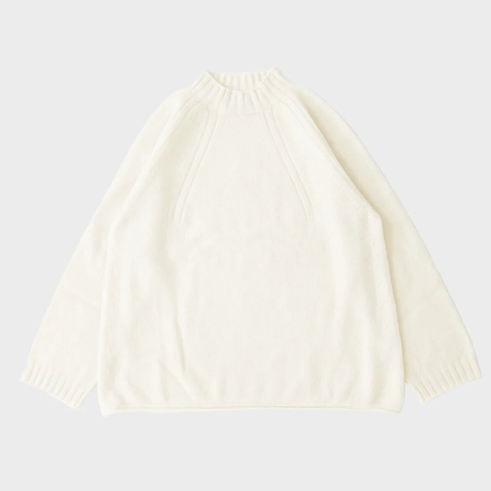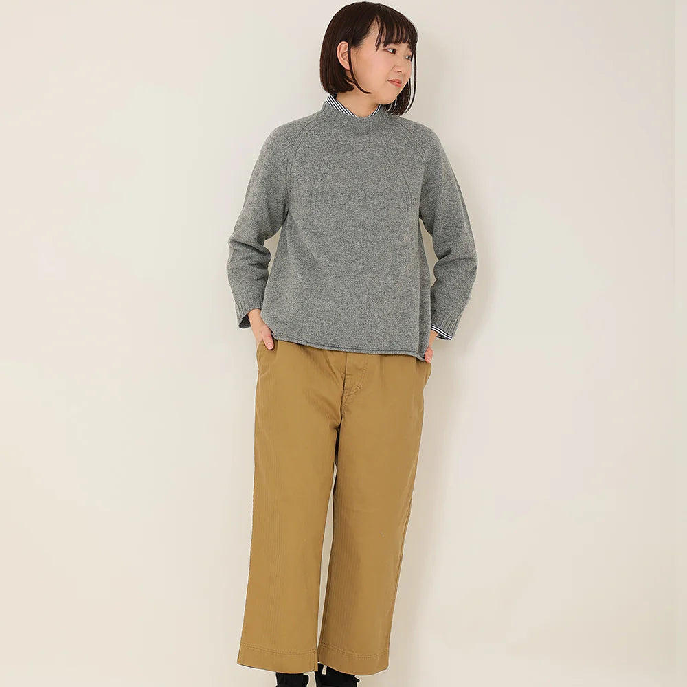 ニットの産地、群馬県太田市がより良いものづくりを掲げて生産するOTA KNIT(おおたニット)。ふんわりと柔らかく、チクチク感のない心地よい肌触りで心まで温めてくれるような、優しい着用感です。しっかりとした編地は長年培われた技術だからこそ、安心してご使用頂けます。首に沿うようなリブ編みで仕上げたネックラインと、放射線状に施した編地は、シンプルなのに存在感を見せてくれます。ゆったりとした着心地で、くるりと小さく巻き上がった裾デザインにも注目です。すっきりとパンツスタイルで合わせたり、ミディアム丈スカートと合わせたり、冬のスタイリングに欠かせない定番の一枚です。