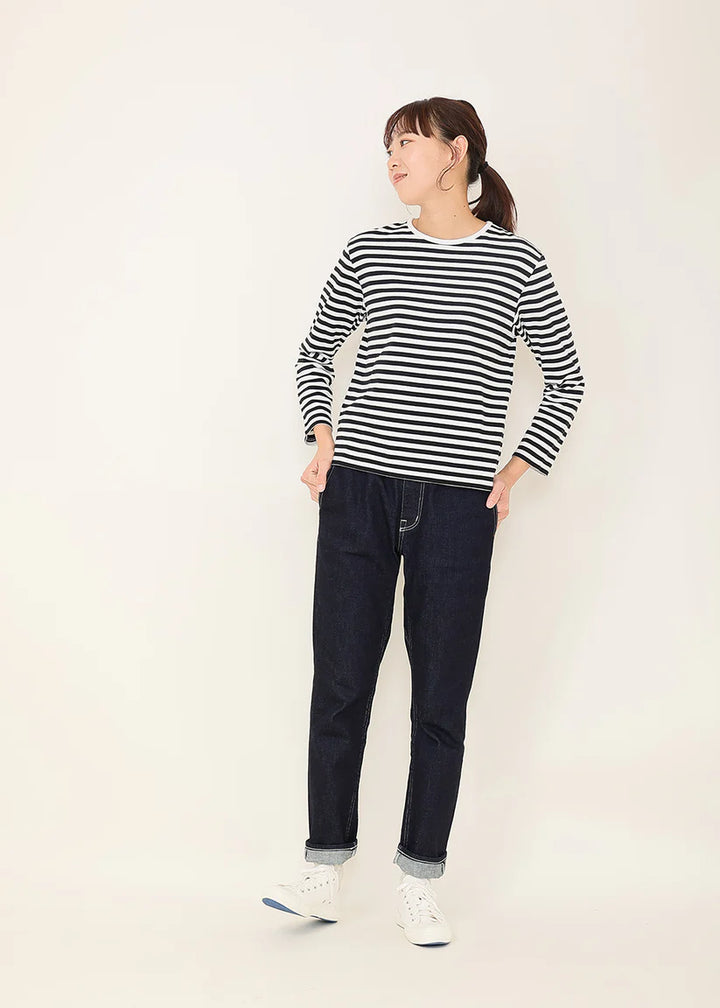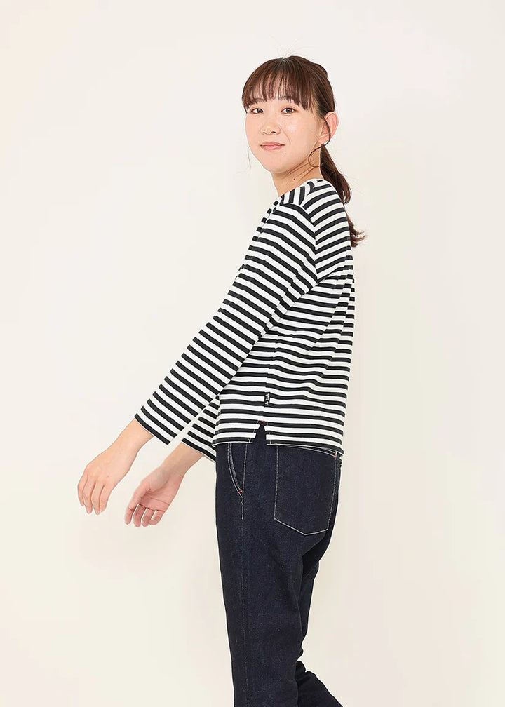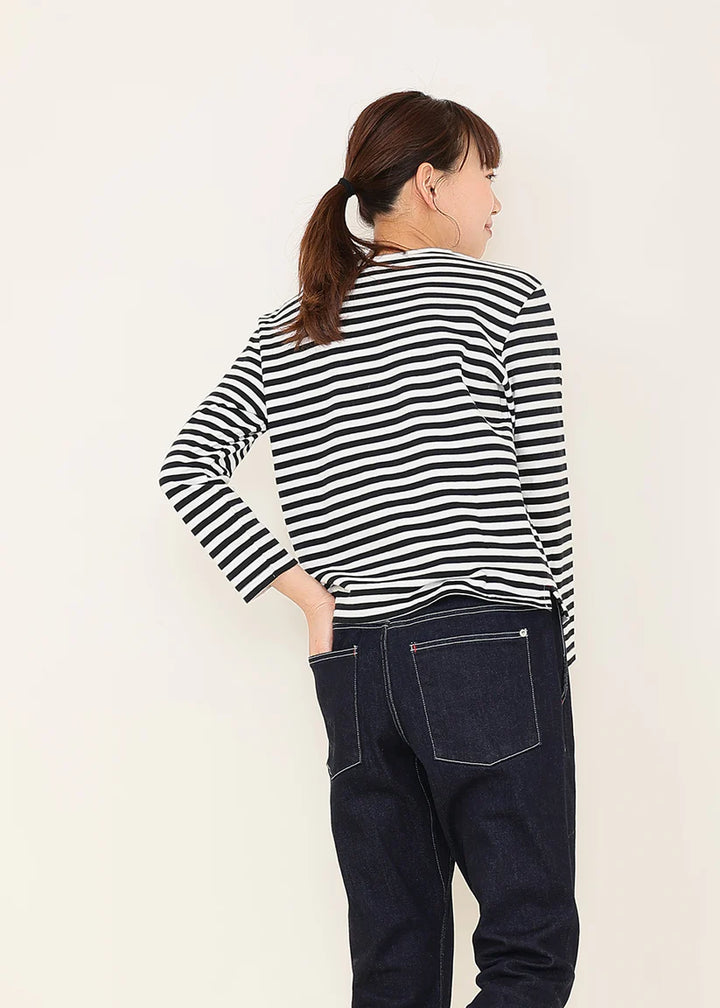 繊維の長い高級なコットンを使用して、オリジナルで裏毛素材を作りました。しなやかな風合いのカットソーはとても着心地がよく、to touchで人気の素材です。丸首で、やや細身のすっきりとしたスタンダードなTシャツです。小さめのスリット入りでロング丈のボトムスとも合わせやすいです。