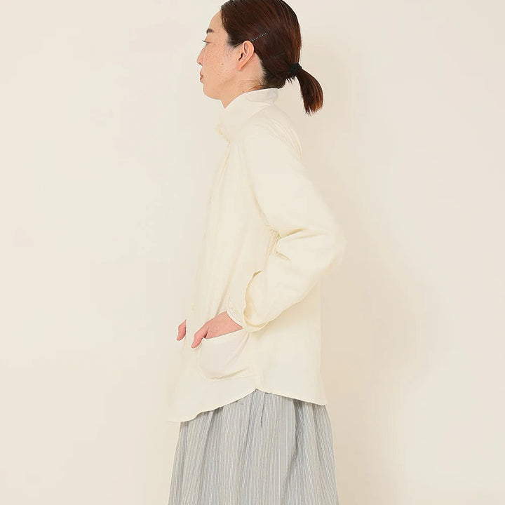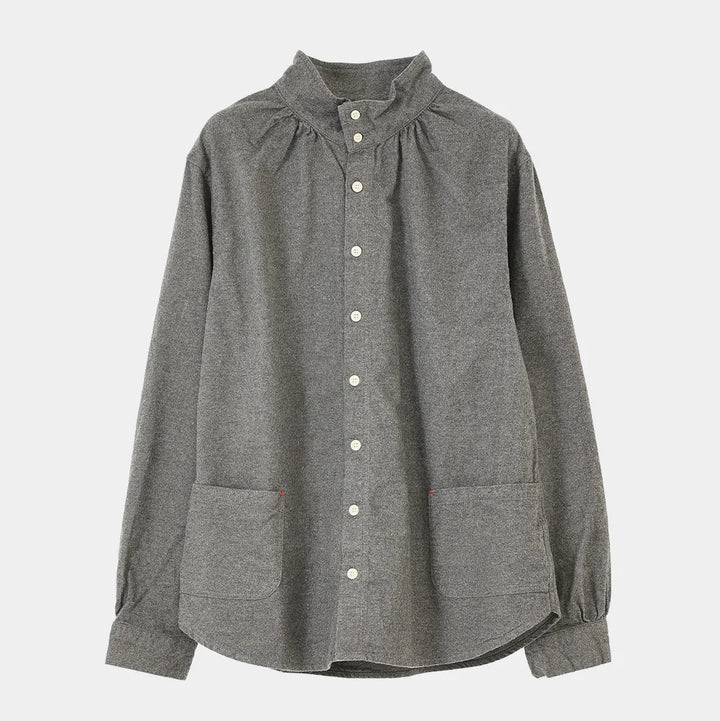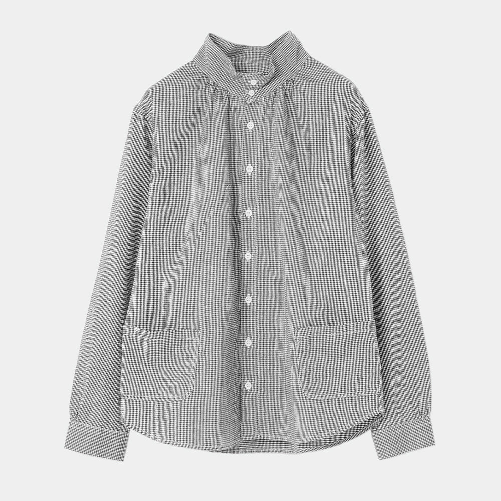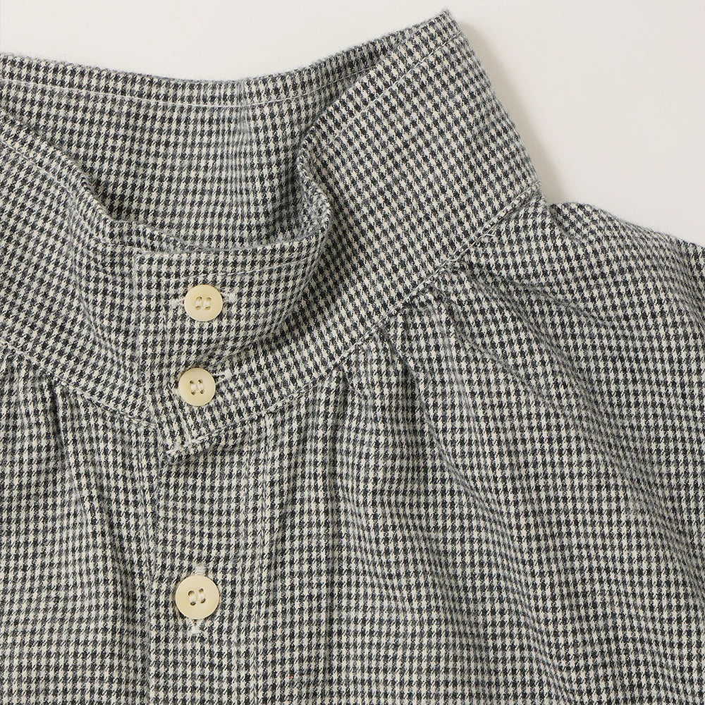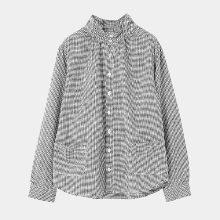 薄くて柔らかなチェック柄の起毛素材を使った先染めシャツ。肌触りがいいので、重ね着をしてもあたりが気にならない、薄手の起毛生地です。『ハイネックのシャツ』といっても、難しい着こなしは必要ありません。いつものシャツコーデをハイネックシャツにするだけで新鮮な着こなしに。セーターのインナーに合わせると首元がちくちくすることなく快適です。また、ハイネックを閉めてかっこよく、羽織りでくたっとナチュラルに。