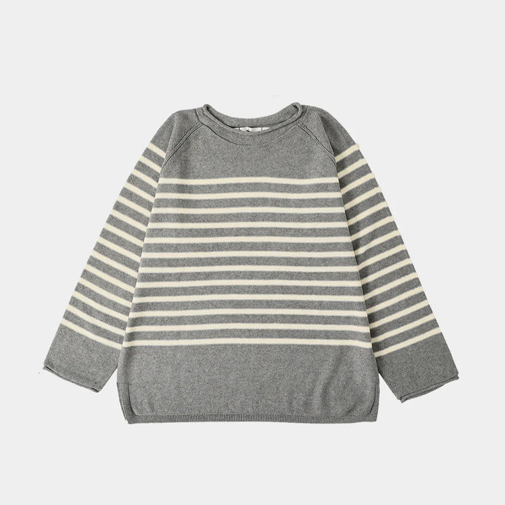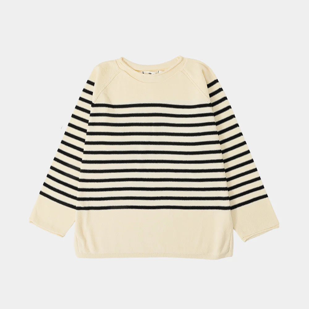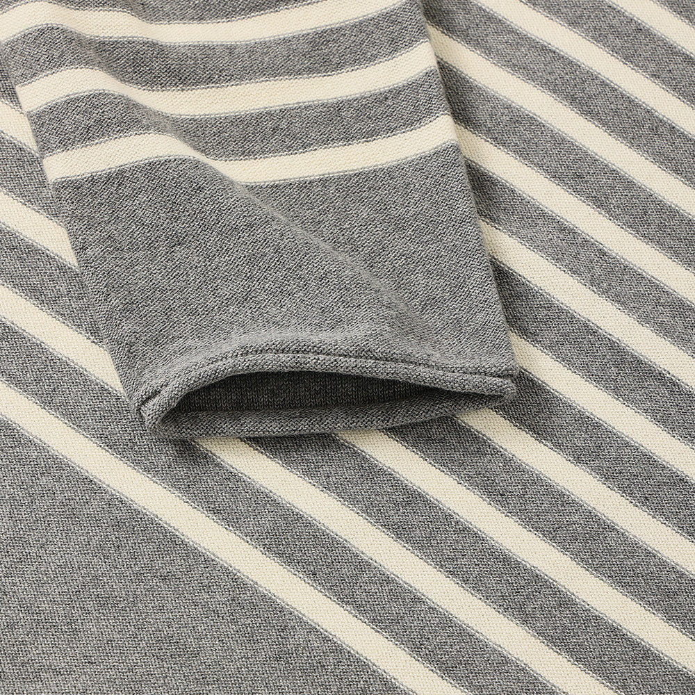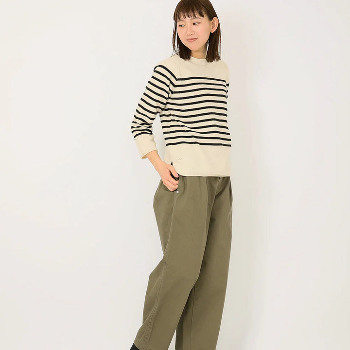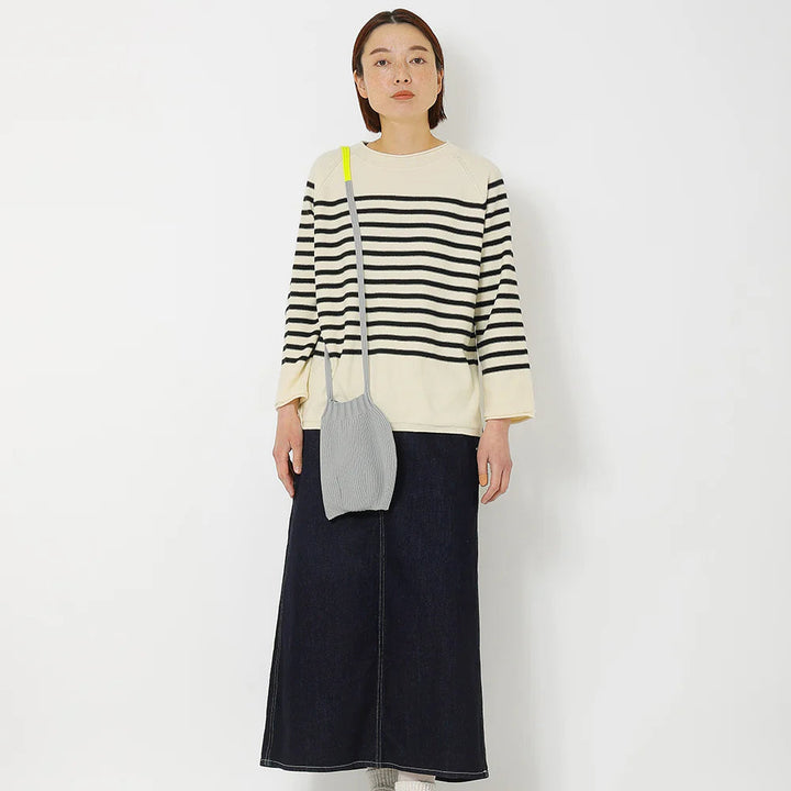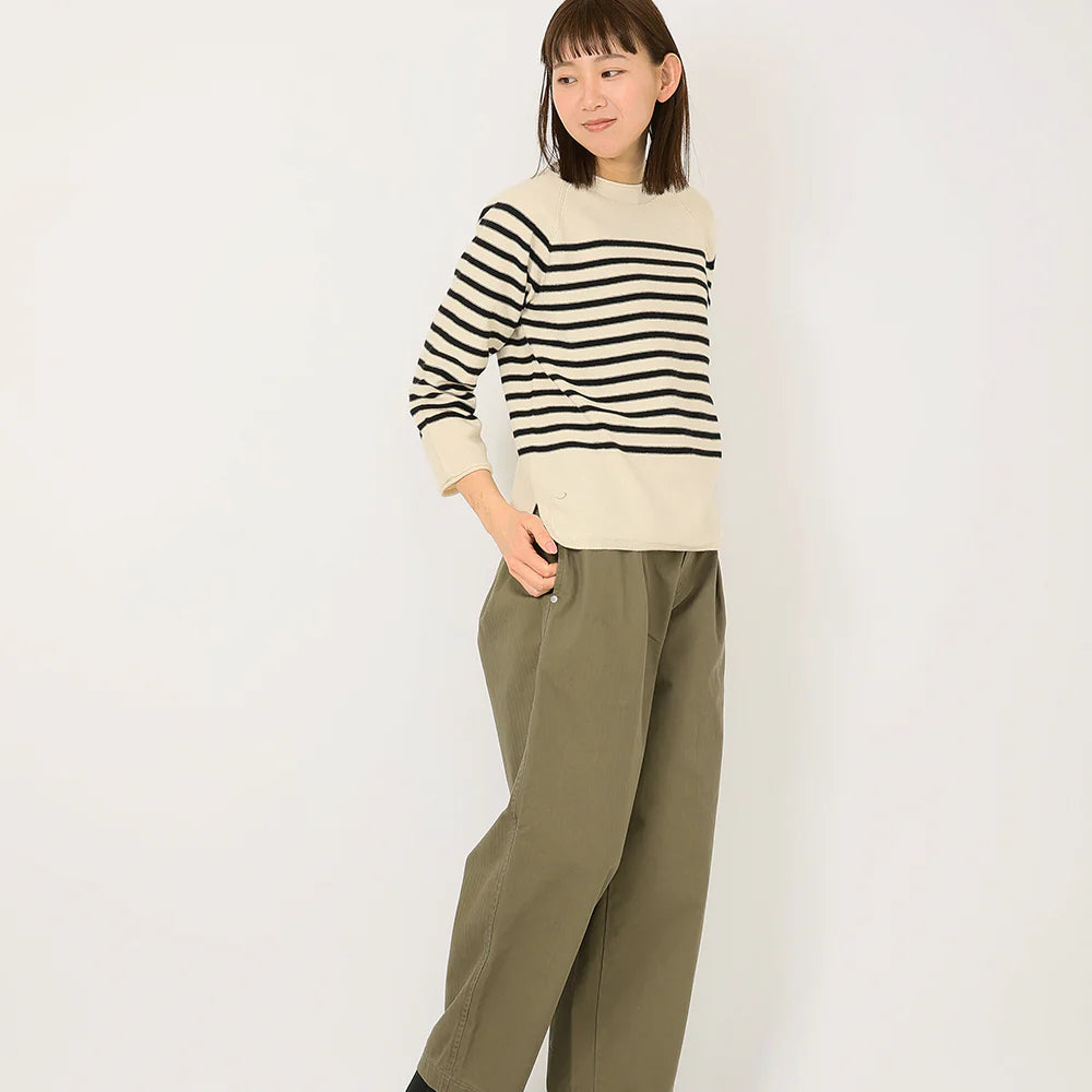 コットンに、落ち綿(おちわた)カシミヤをブレンドした糸を使用。綿の取り扱いやすさに加え、カシミヤのタッチをほんのり感じられる素材なので秋口のまだ少し暖かい時期でも、活躍できる素材です。ありそうでなかったコットンカシミヤ素材のボーダーニットが登場です。シンプルなデザインの中、裏目ボーダーなのがさりげないおしゃれポイント♪手洗い可能なのも嬉しいですね。サイドスリット入り。